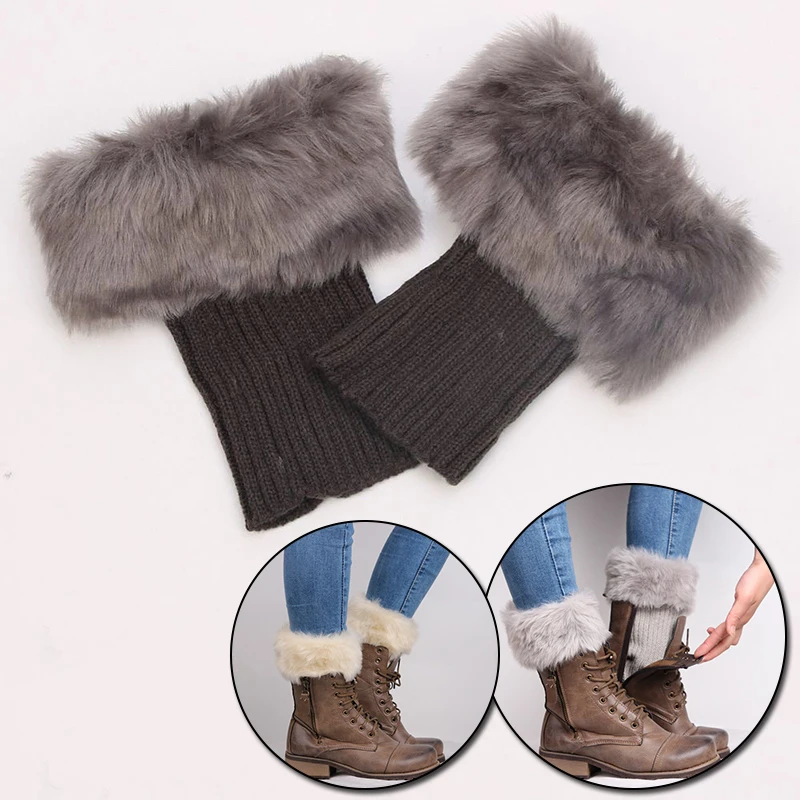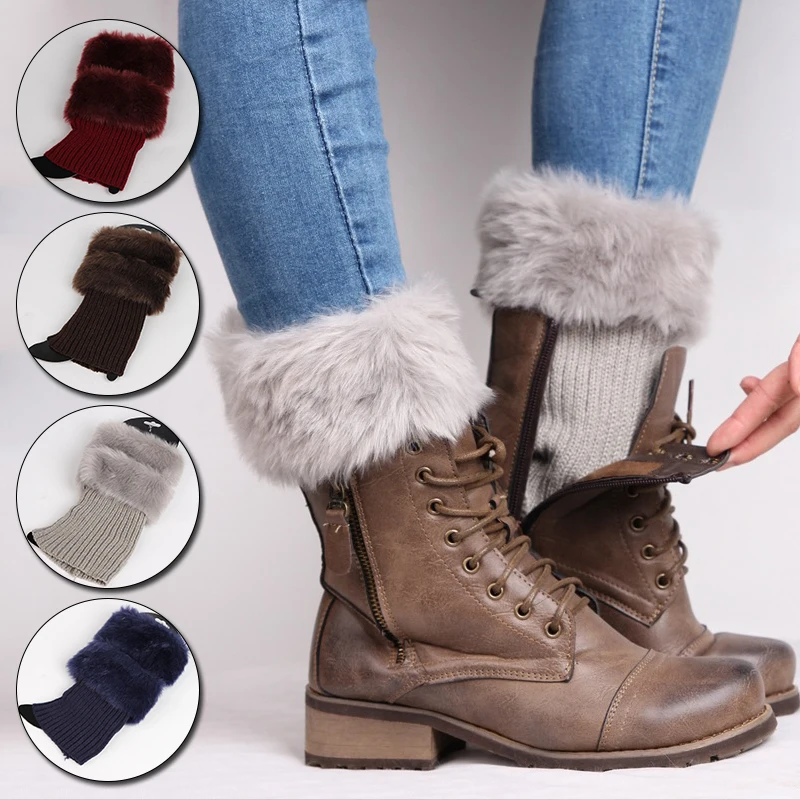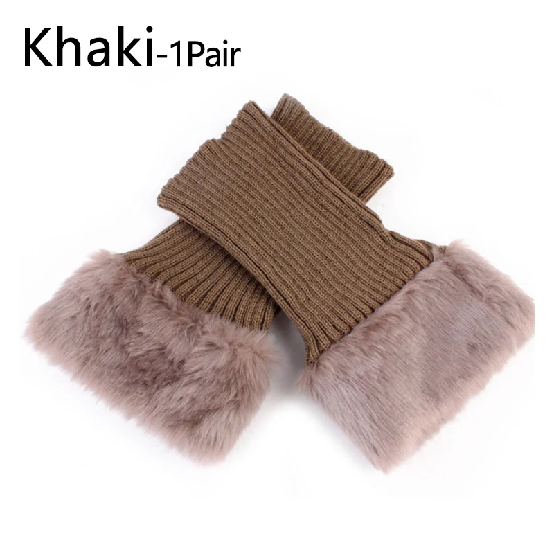 Новинка, женские зимние гетры, вязаные крючком носки с отделкой из искусственного меха, верхние манжеты, Короткие шерстяные бахилы, 1 пара