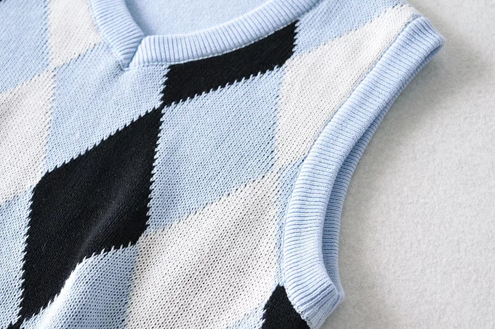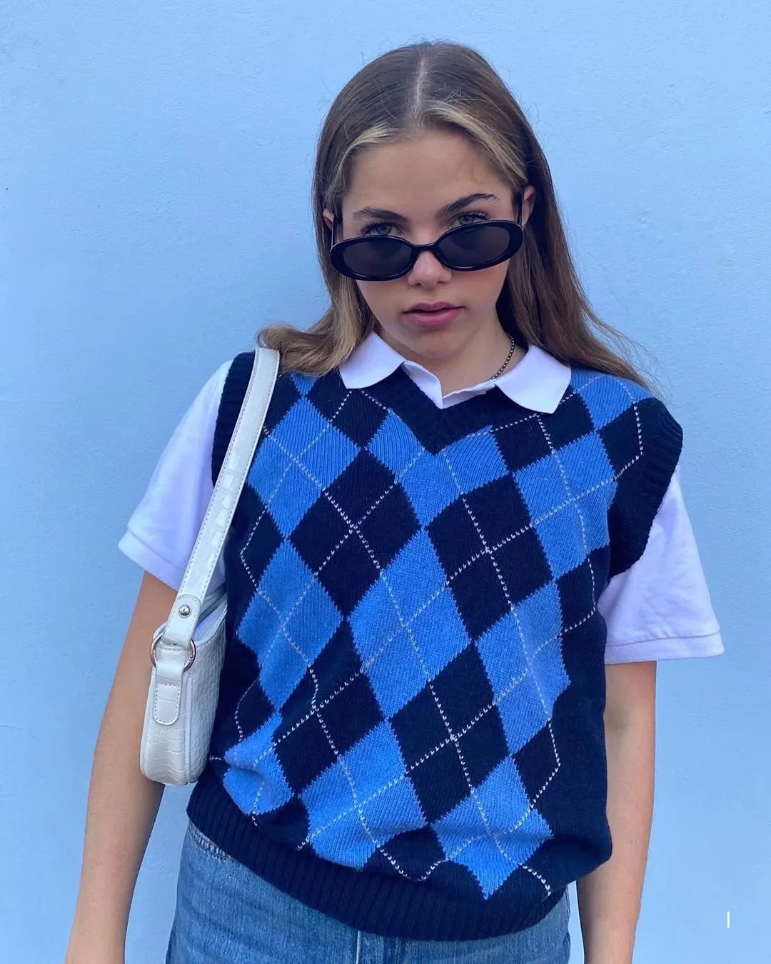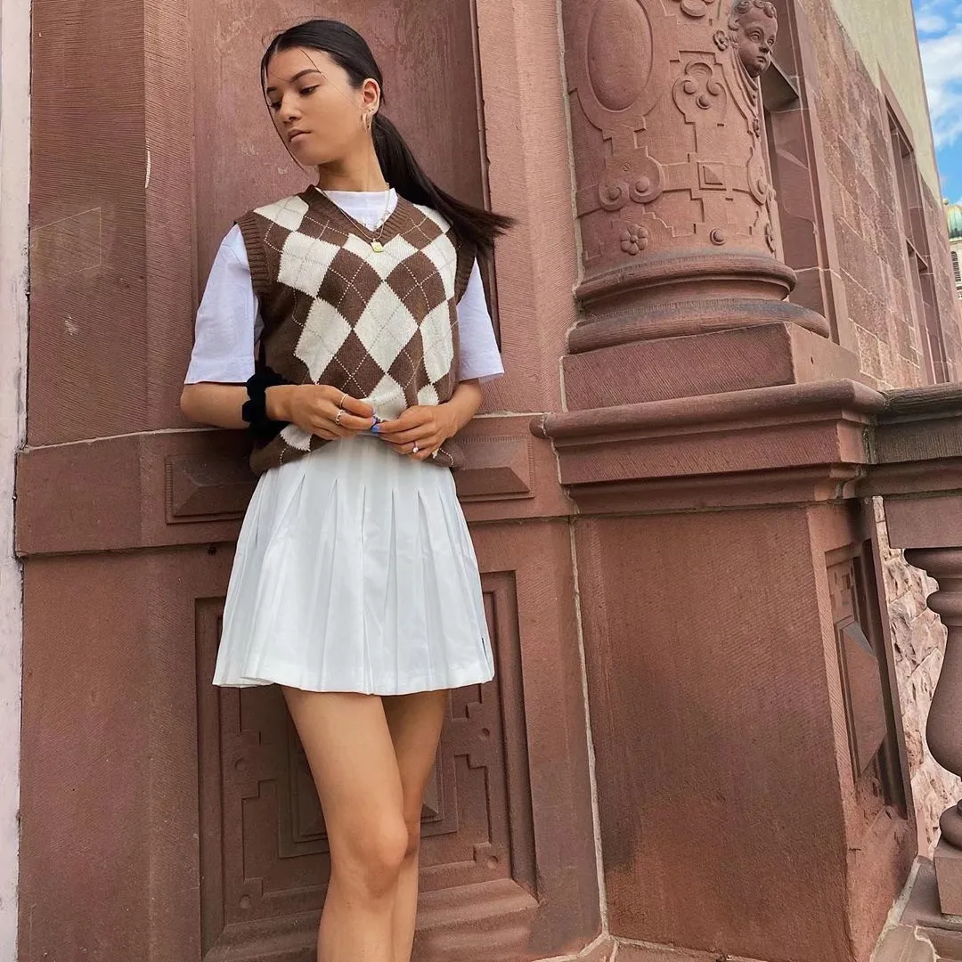 Вязаный свитер-жилет в шотландскую клетку в стиле 90-х, бежевого и зеленого цветов, Классный джемпер без рукавов с V-образным вырезом в Корейском стиле, Y2K, вязаная одежда