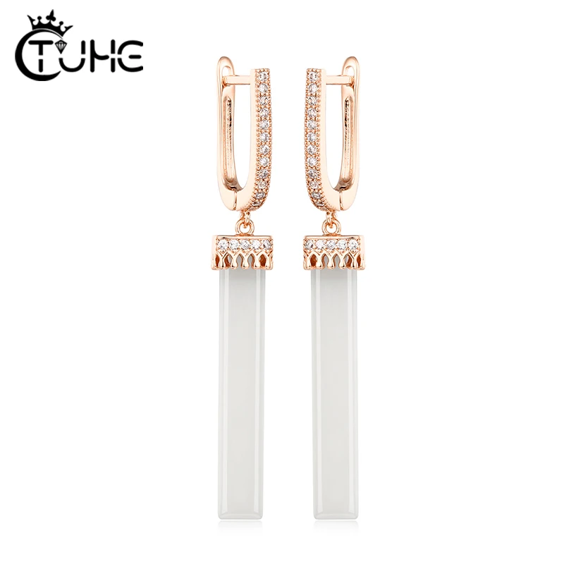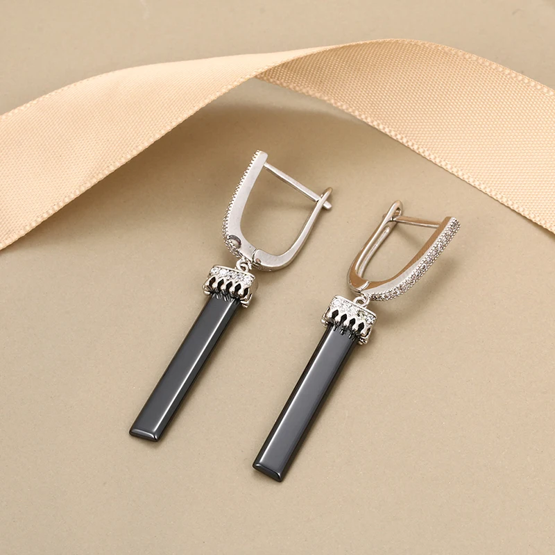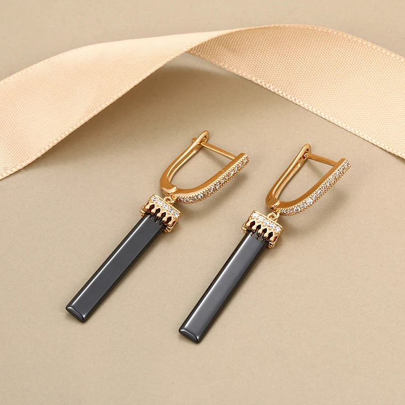 Женские керамические серьги Hyperbole из нержавеющей стали, черно-белые геометрические серьги из розового золота с кристаллами, модные ювелирные украшения