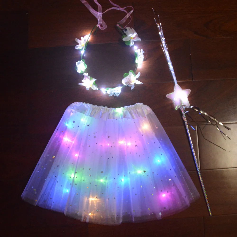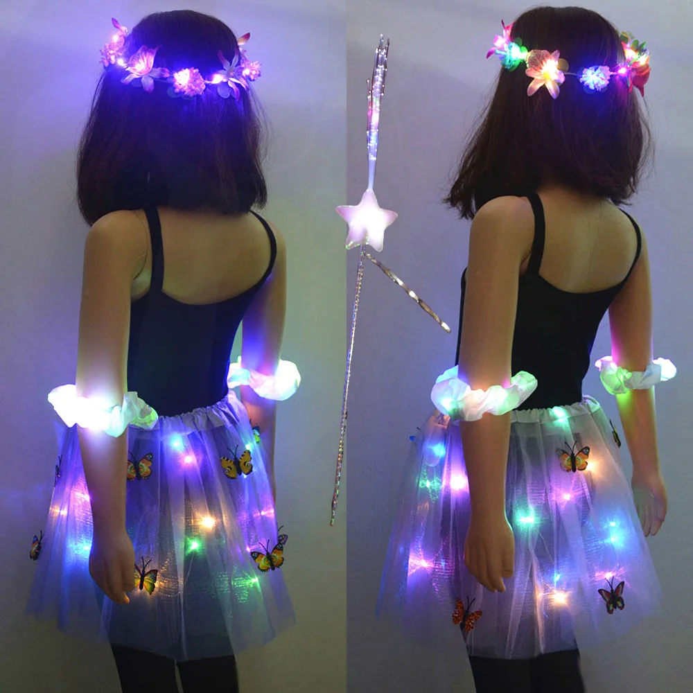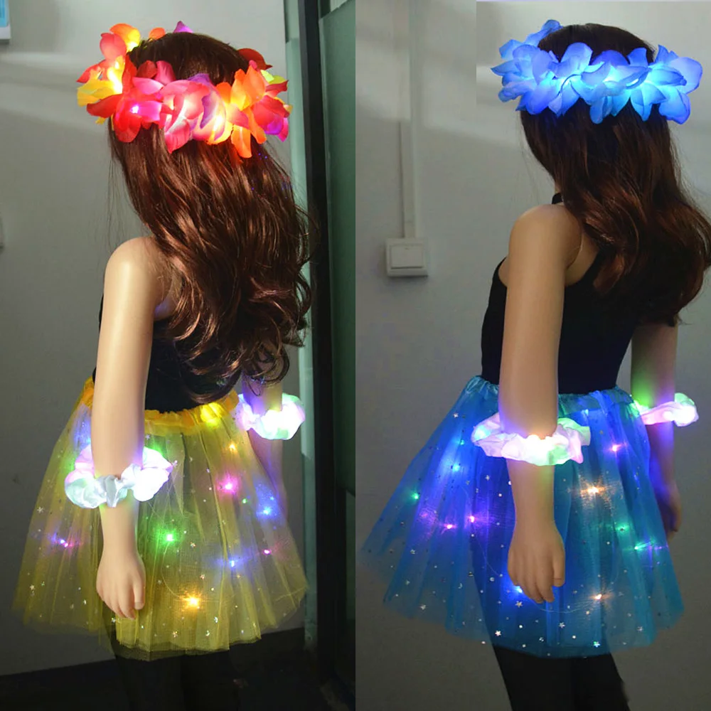 Светящийся цветочный венок с юбкой-пачкой для девочек, повязка на голову, корона, вечеринка, пачка, подарок на день рождения, свадьбу, светящийся праздничный костюм