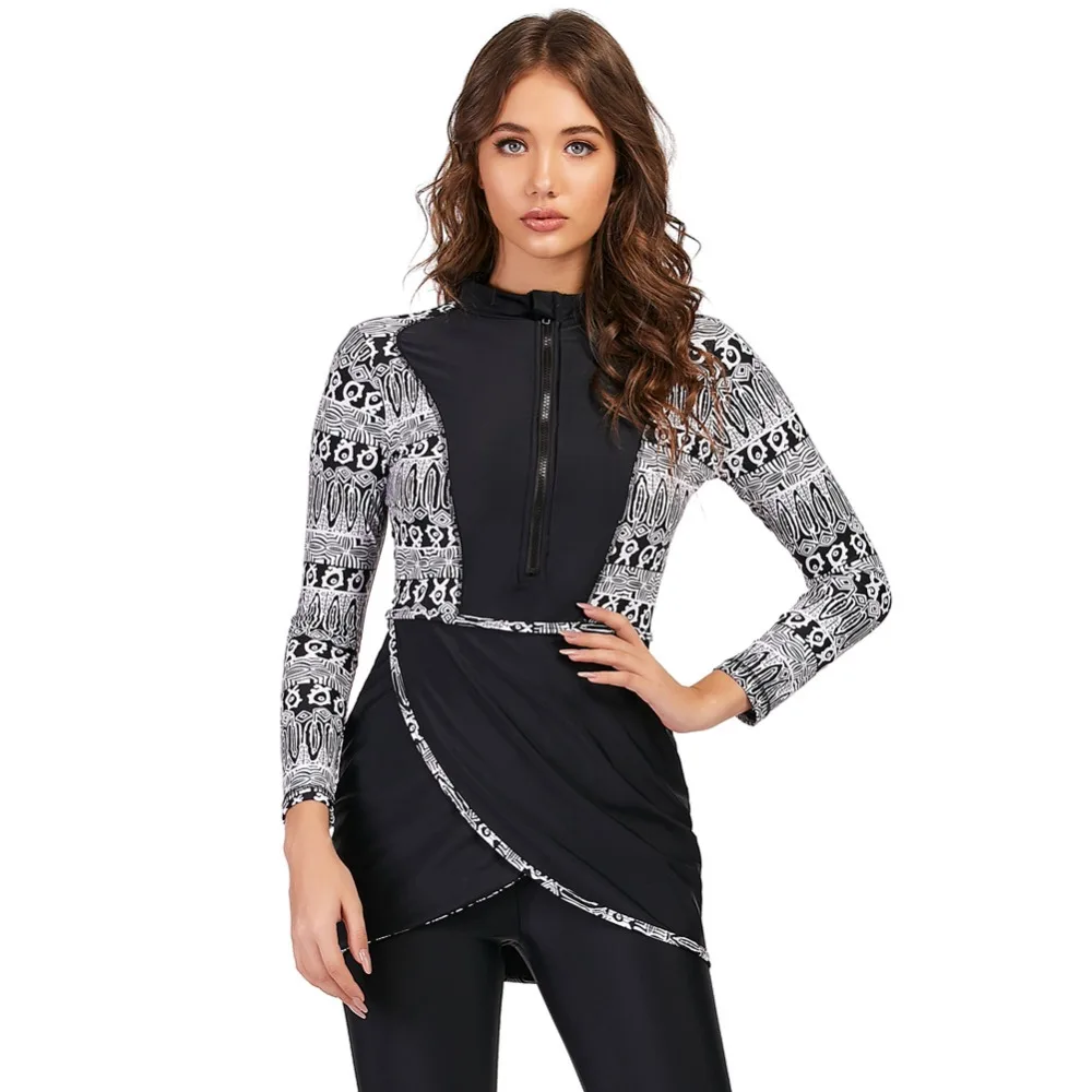 Женский исламский купальный костюм, купальник с юбкой, с длинным ру...
