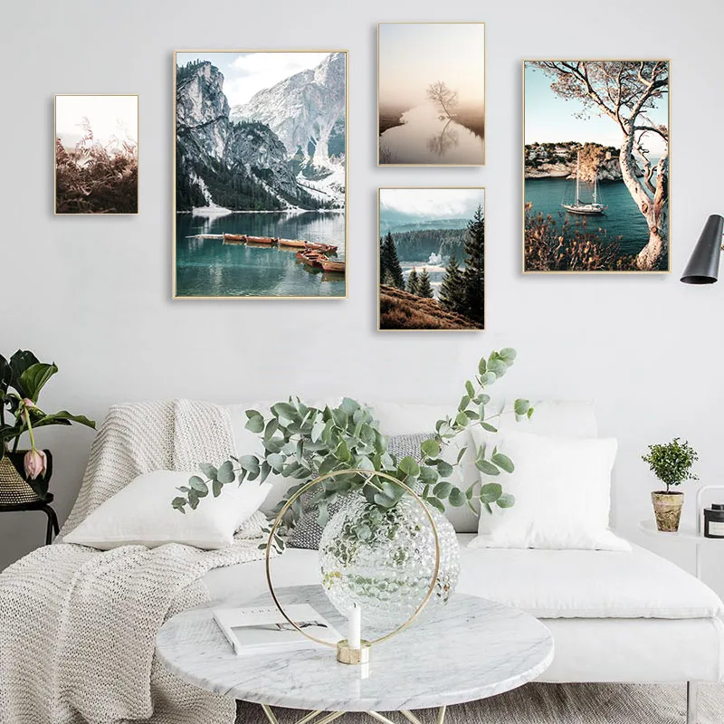 Постер скандинавский природный пейзаж, настенная Картина на холсте с изображением гор, озера, моста, Скандинавский дизайн, современный домашний декор