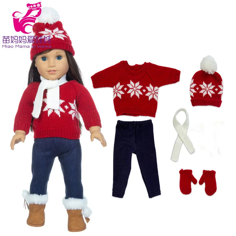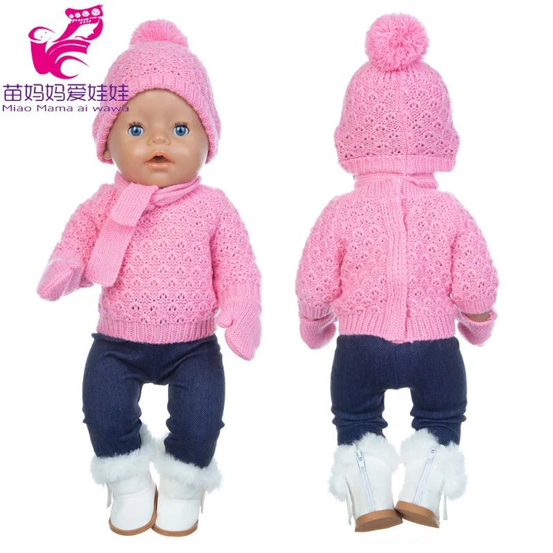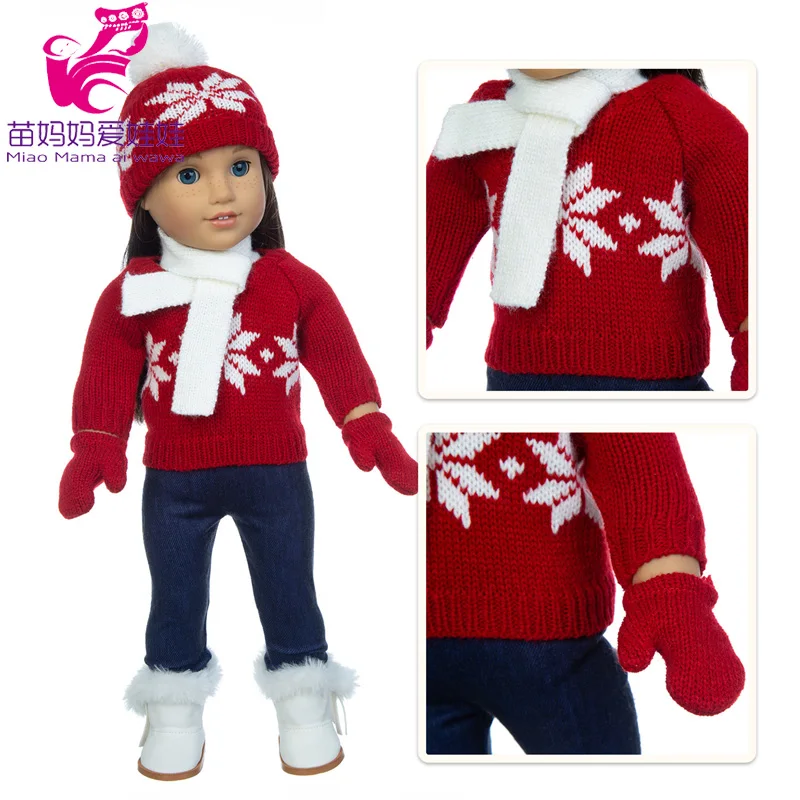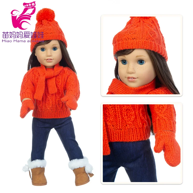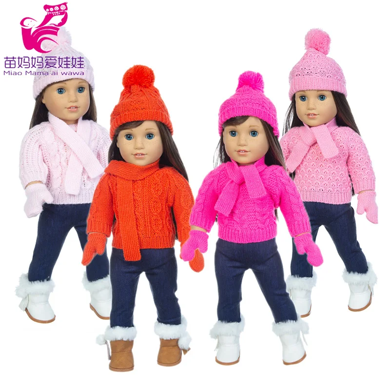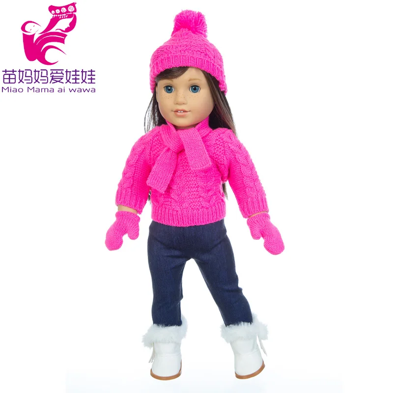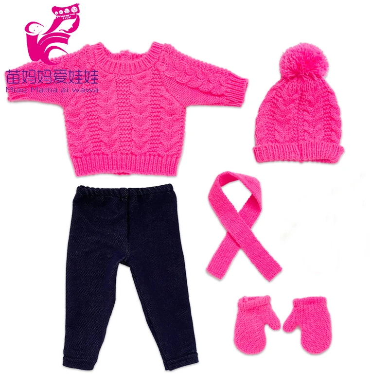 18 дюймов девочка кукла одежда розовый свитер шарф шапка перчатки, ...