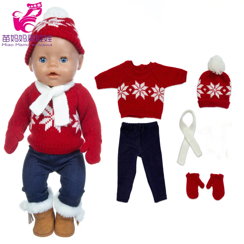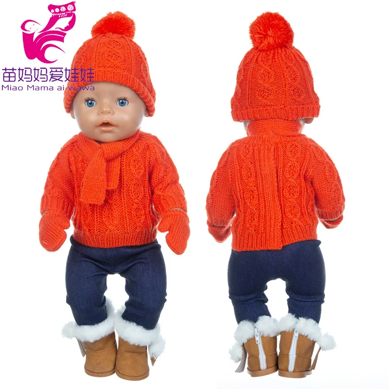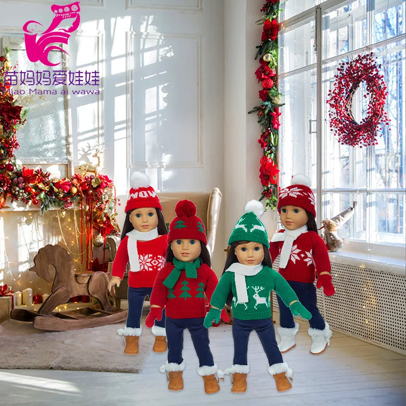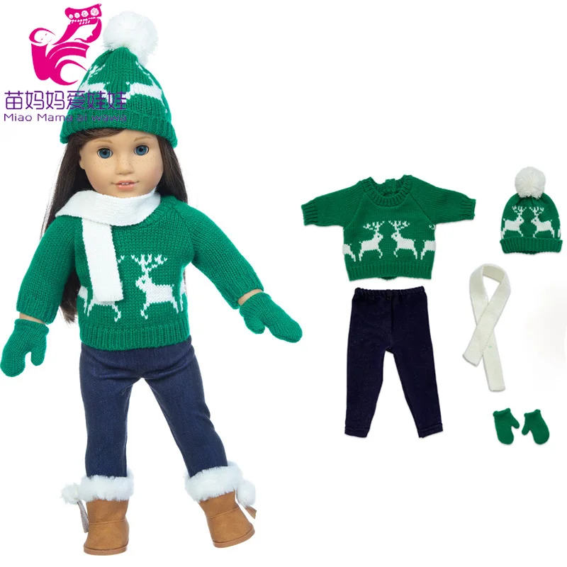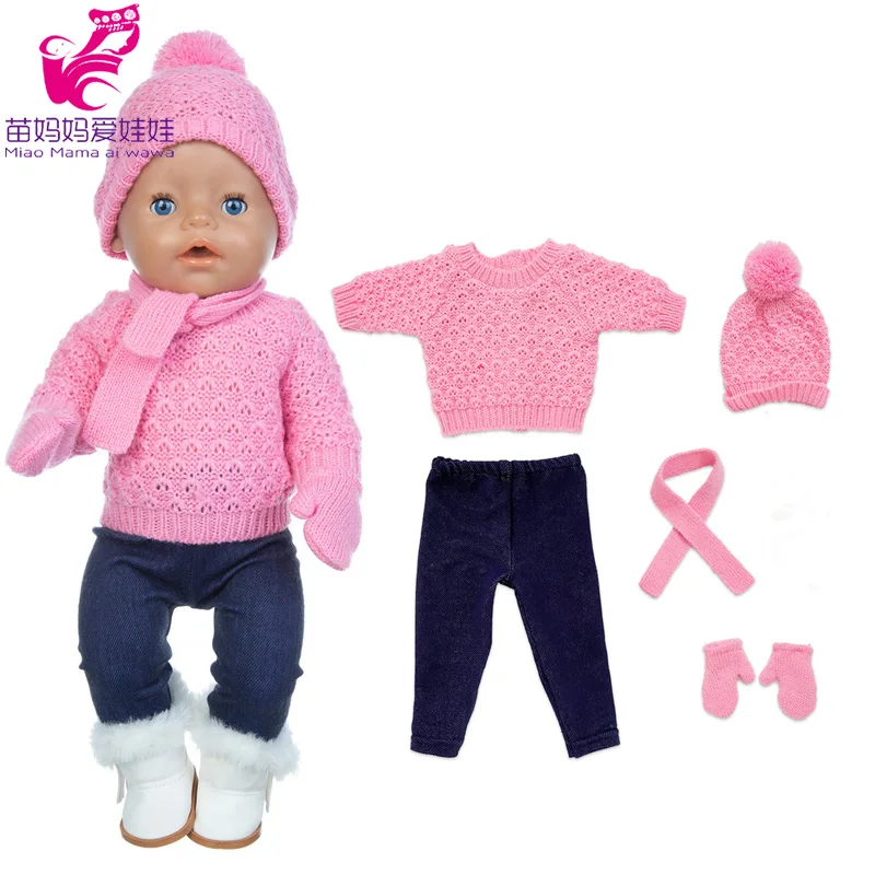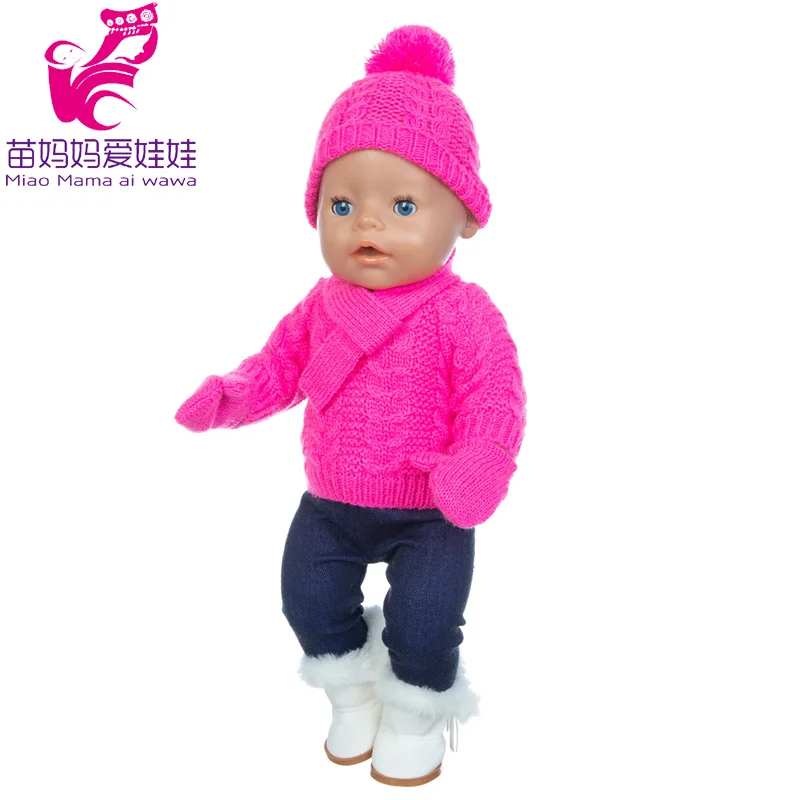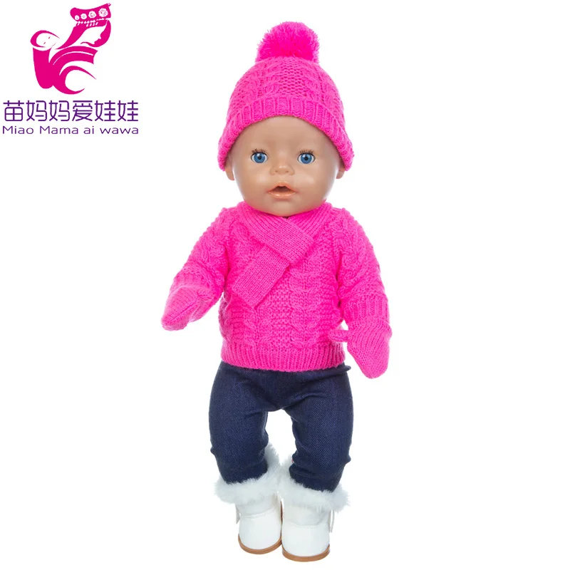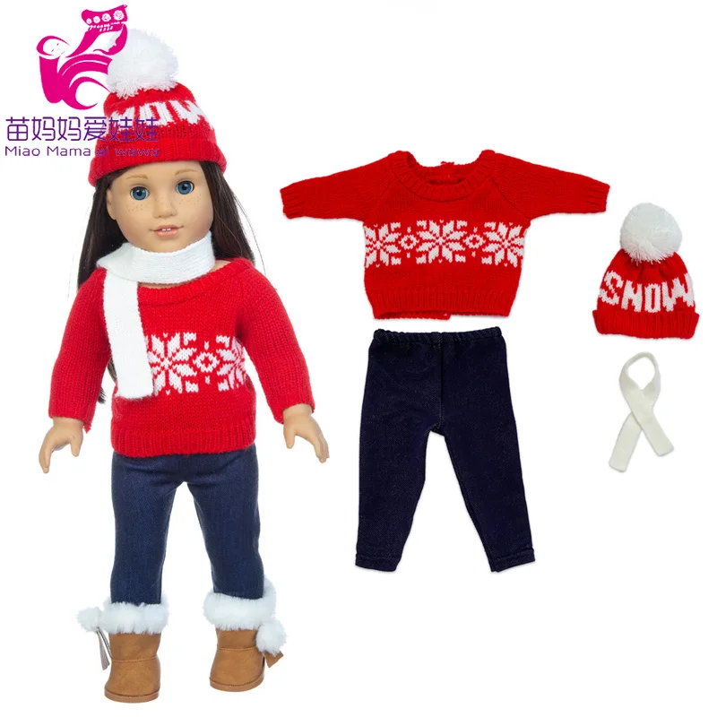 18 дюймов девочка кукла одежда розовый свитер шарф шапка перчатки, ...