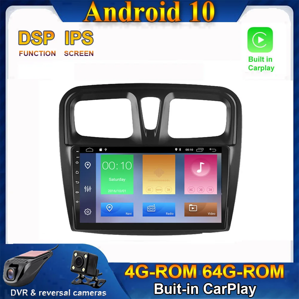 CARPLAY Android 10,0 автомобильное радио, Автомобильная GPS-навигация, мультимедиа для Renault Logan, Sandero Symbol 2014-2019, без DVD