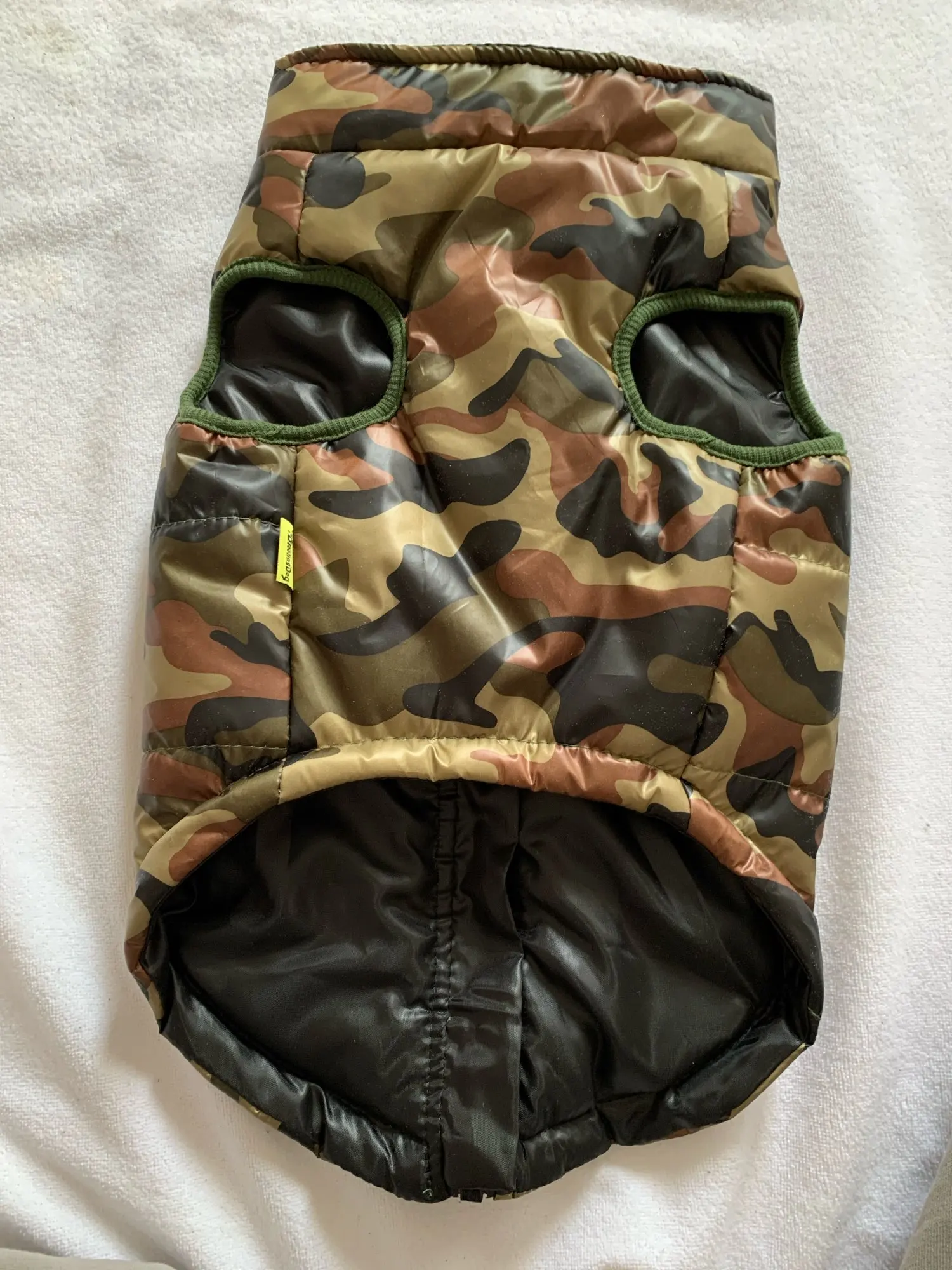 Отличная жилетка за такую цену. Брали для мексиканской голой собаки на весну: носить на комбинезоне, чтоб не продувало. Подкладка нет, на зиму будет холодно. Хорошее качество пошива-швы ровные, почти нет торчащих ниток. Размерная таблица соответствует, единственное-длина по спинке в таблице указана с учетом ворота, а он довольно большой, поэтому жилетка на собаке чуть короче, чем в описании