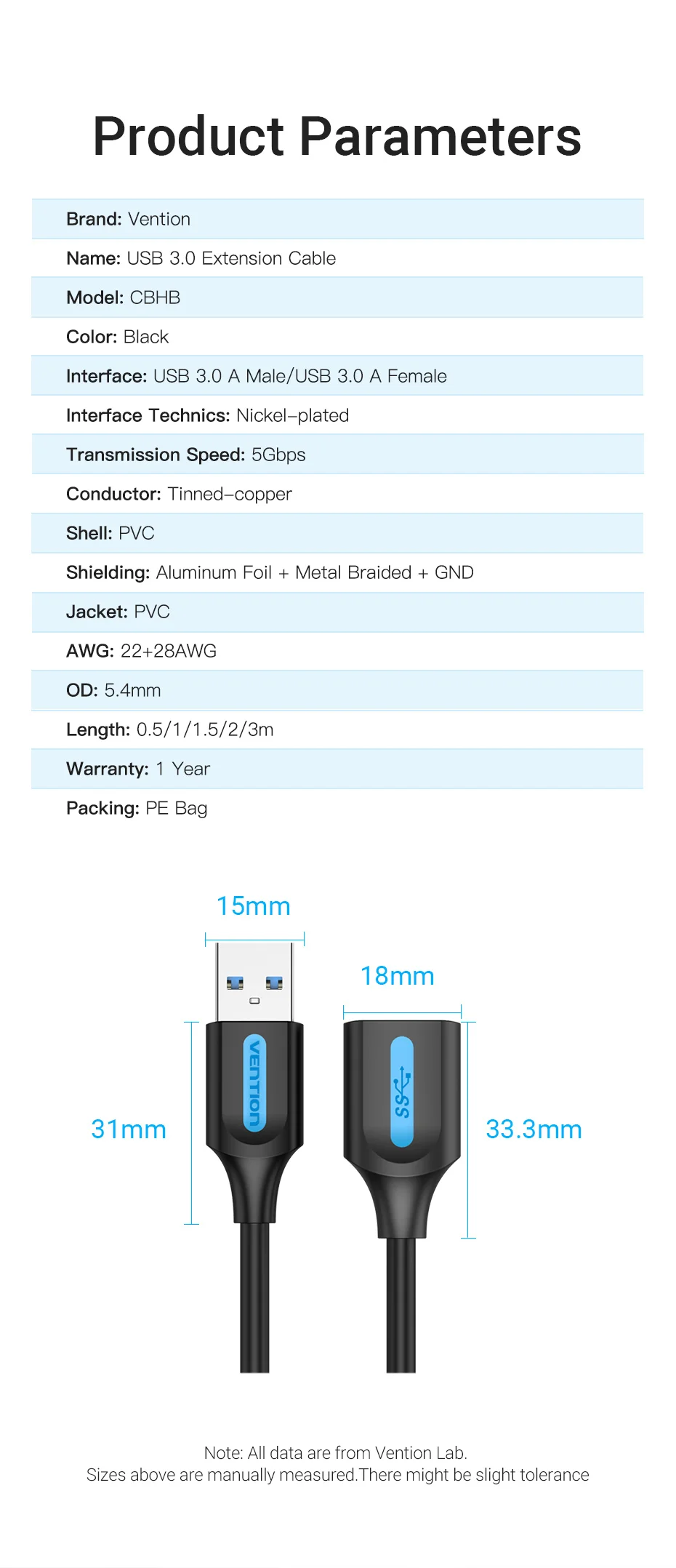 Кабель-удлинитель USB 3.0, USB 2.0, Vention, для Smart TV, жесткого диска SSD, Xbox One, ноутбука, компьютера