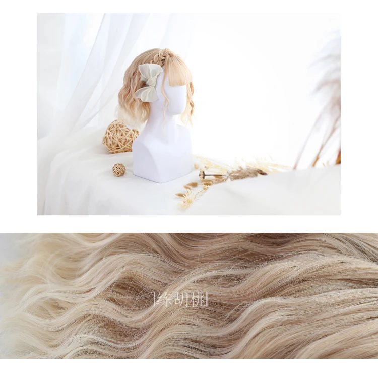 Градиент бежевый Kawaii парик Лолита Harajuku бледно светлые золоты...