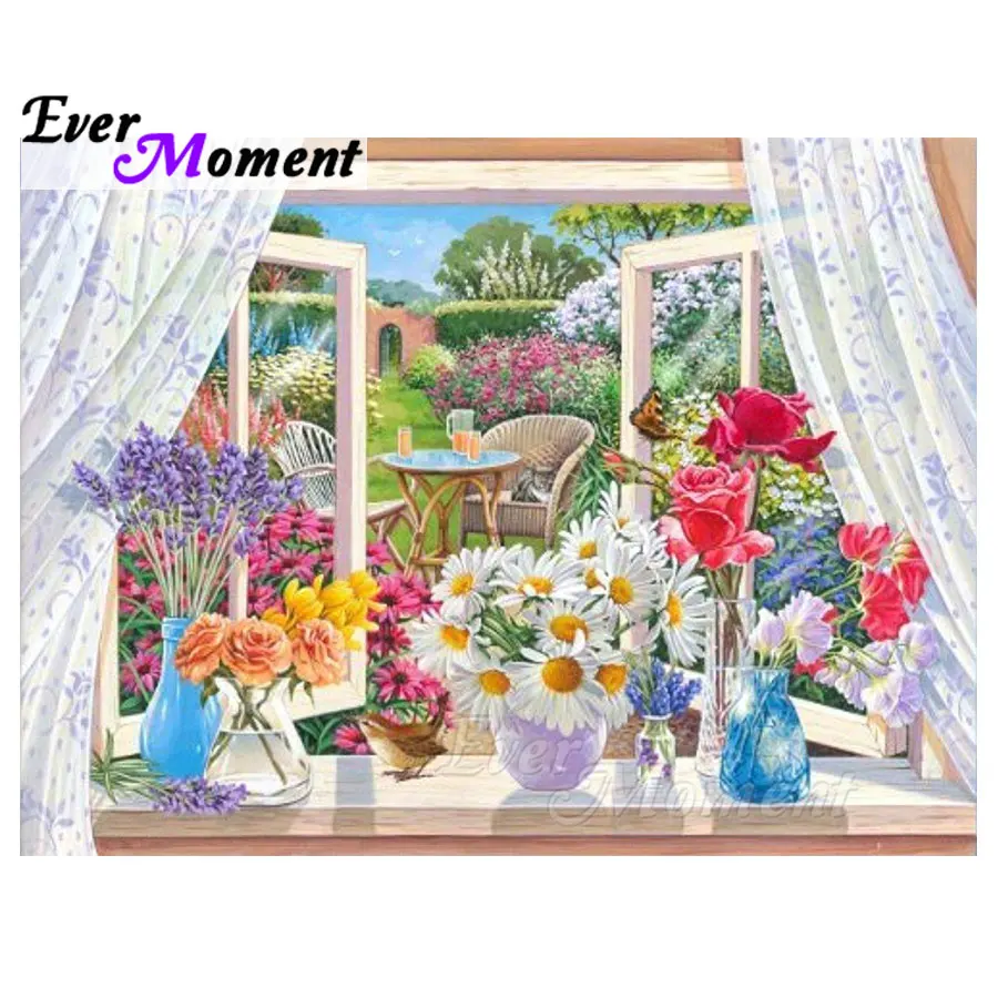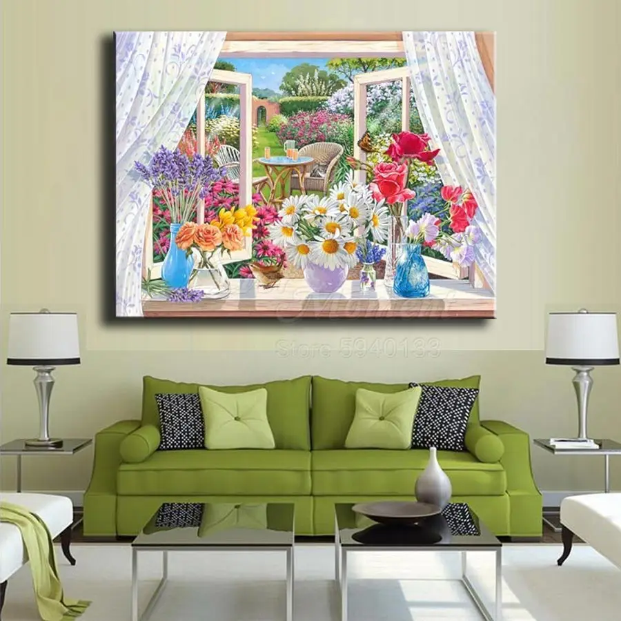 Алмазная 5d-картина с цветочным пейзажем, внешнее окно, квадратные камни из смолы, домашний декор 4Y991