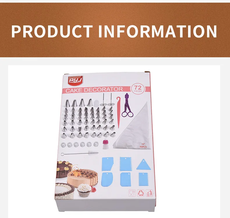 Набор из 72 предметов, украшение для крема, кондитерский мешок, скребок для торта, одноразовый кондитерский мешок, инструменты для украшения торта, инструменты для выпечки