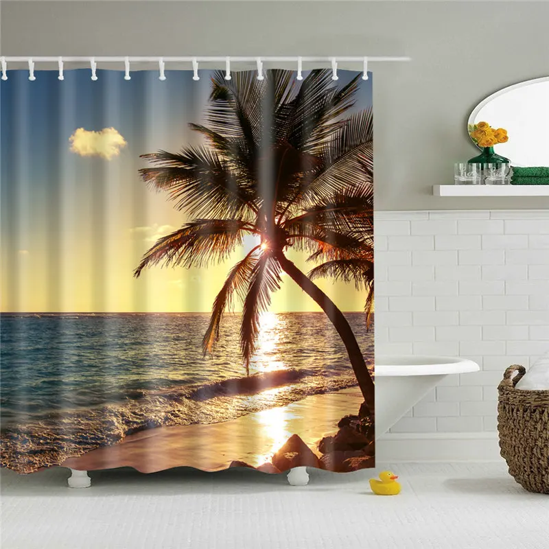 Занавеска для душа из полиэстера, водостойкая, с принтом в виде кокосовой пальмы, с 12 крючками