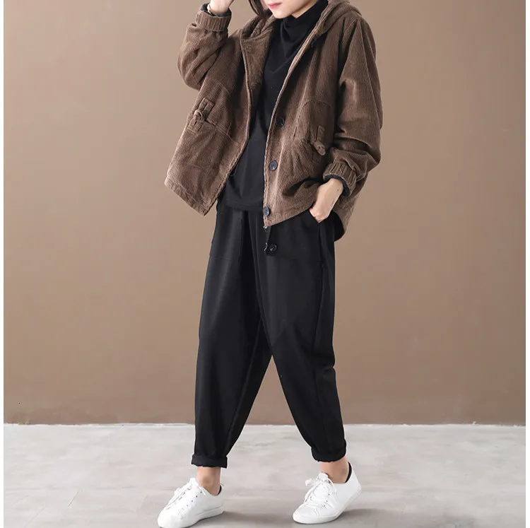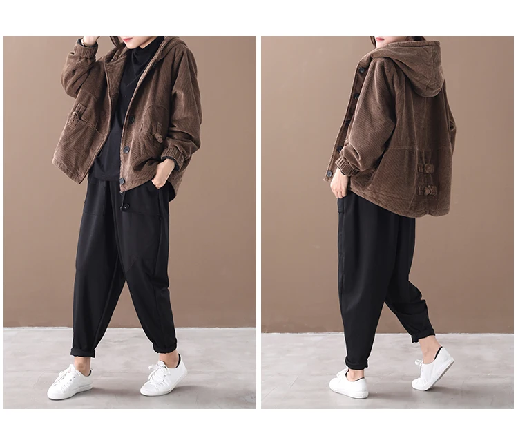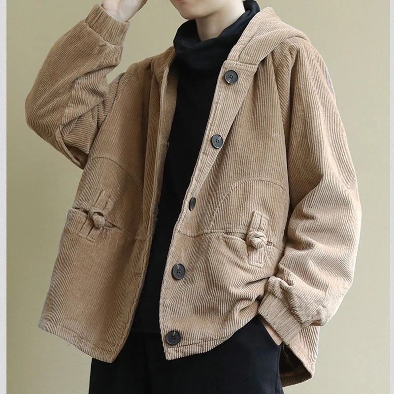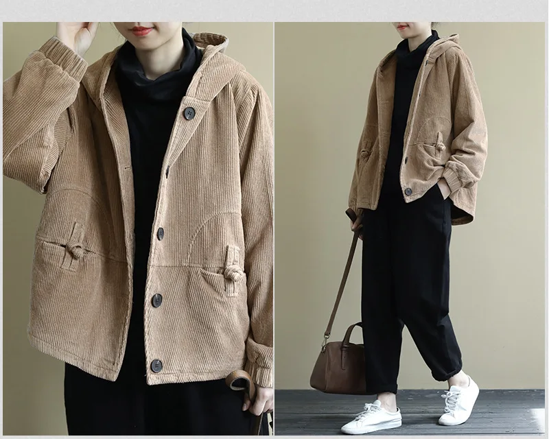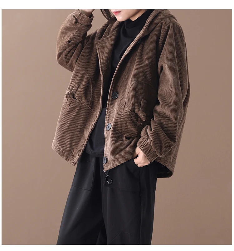Женская Вельветовая куртка с капюшоном, черная теплая винтажная кур...
