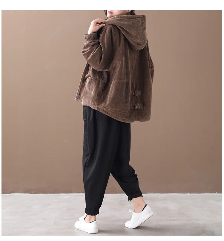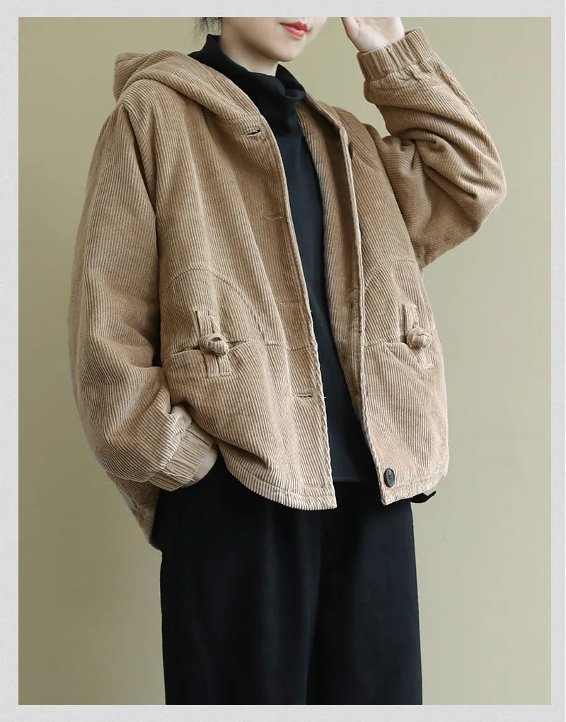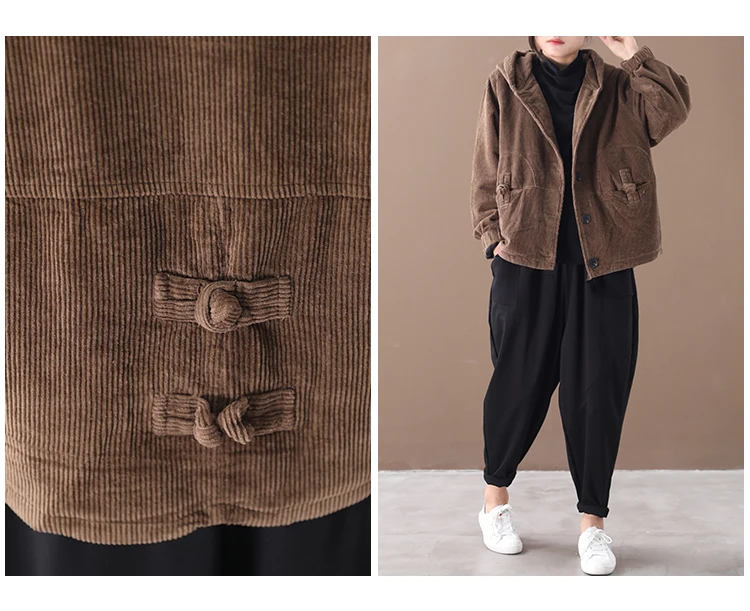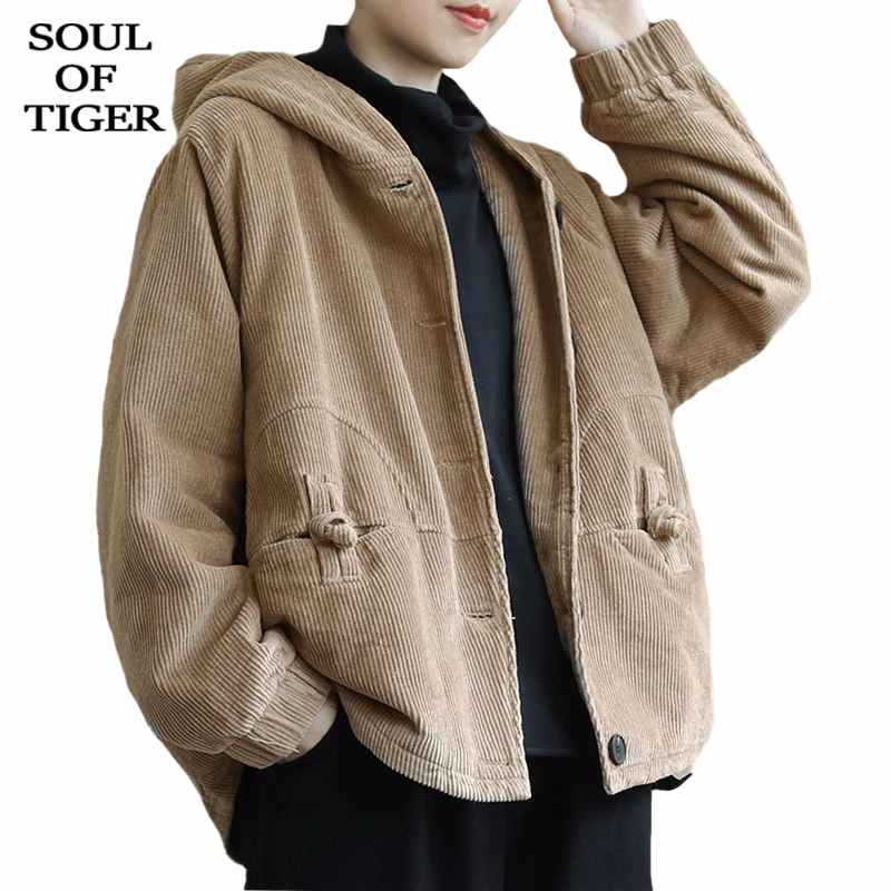 Женская Вельветовая стеганая куртка SOUL OF TIGER, свободная Теплая стеганая куртка с капюшоном, в европейском стиле, размера плюс