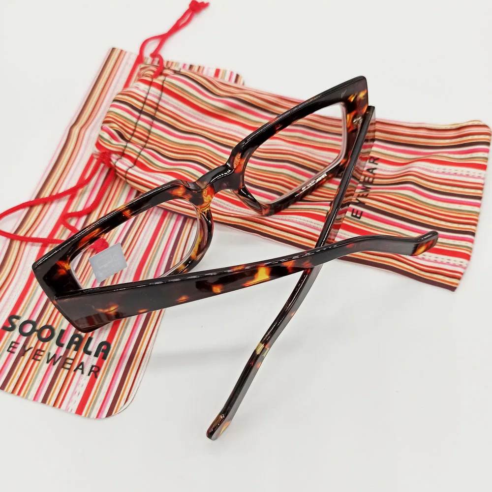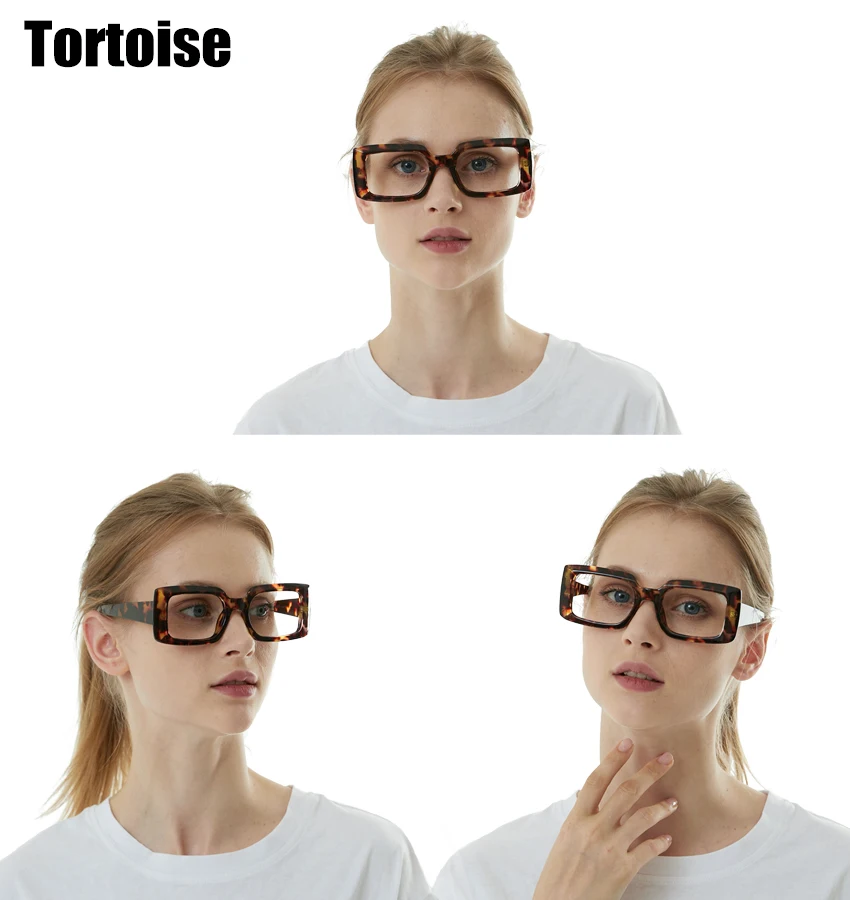Пришли очки в почтовой коробке, в комплекте есть красивая салфетка для протирки линз и голубой чехол на молнии с названием бренда. Очки для чтения, с коррекцией +200. Ширина линз: 51 мм, высота: 32 мм, длина дужки: 136 мм, общая длина: 144 мм. Высококачественная квадратная рамка и прозрачные линзы!