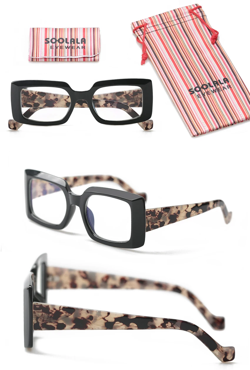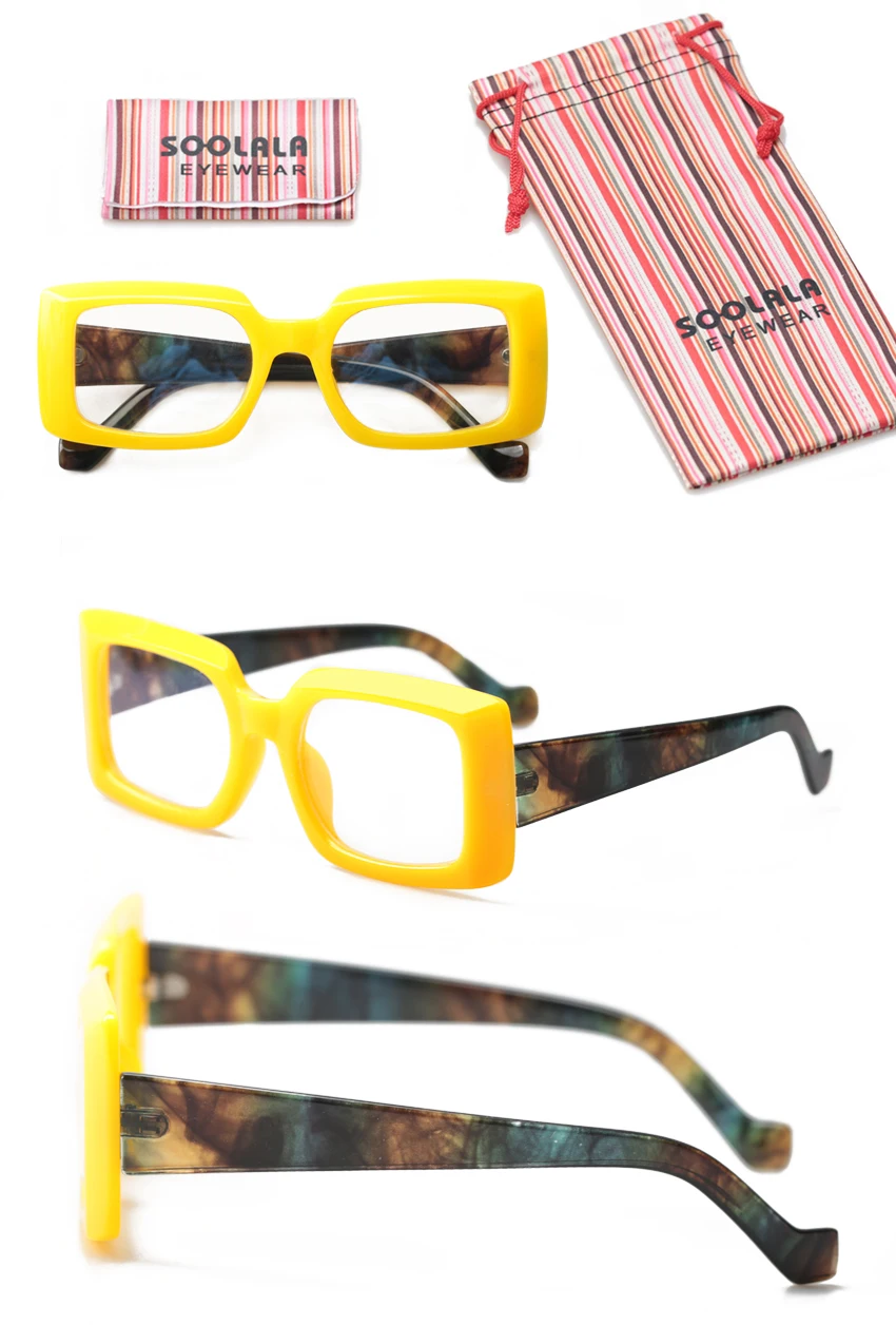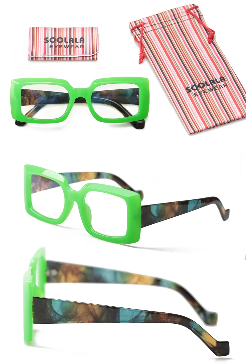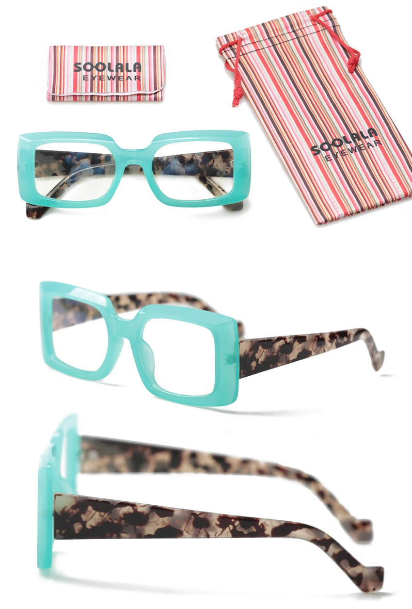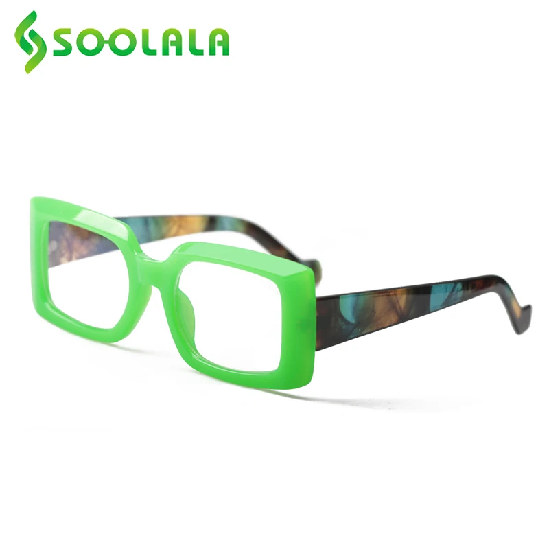 SOOLALA Small Square Anti Blue Light Reading Glasses For Women Candy Color Wide Arms Presbyopia Glasses Magnifier For Reading