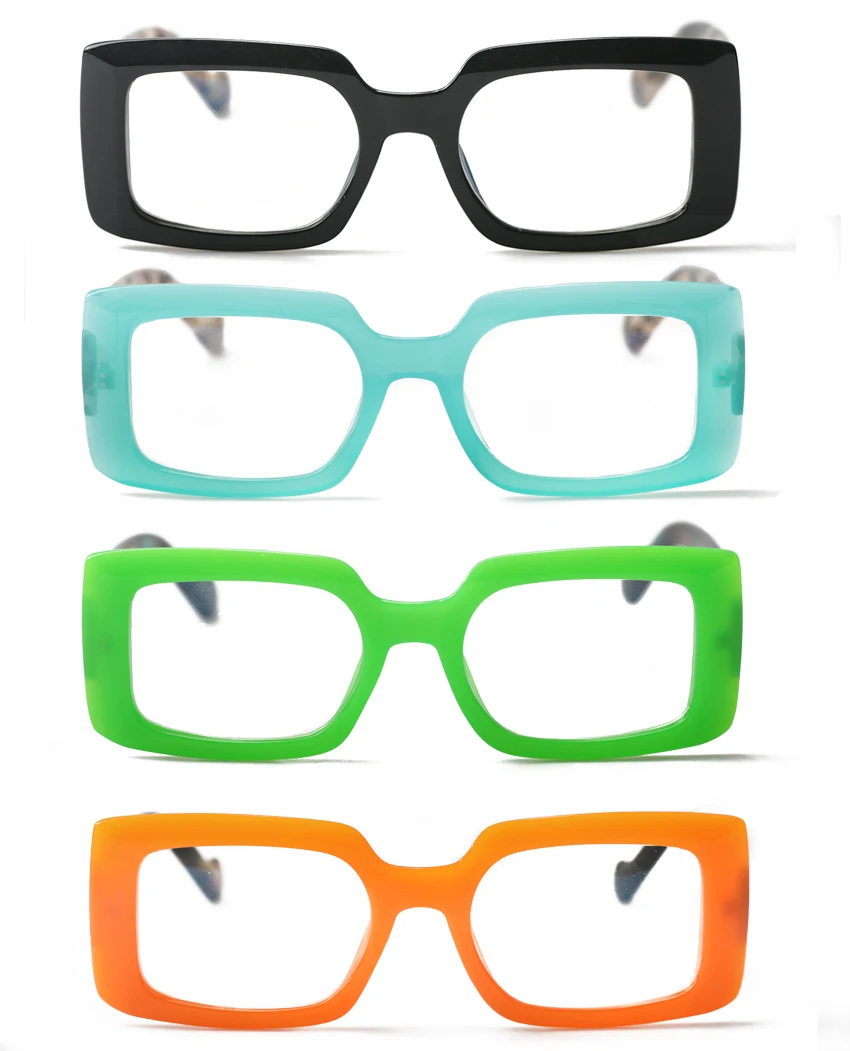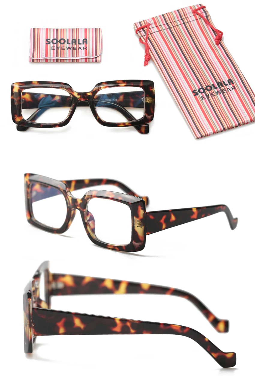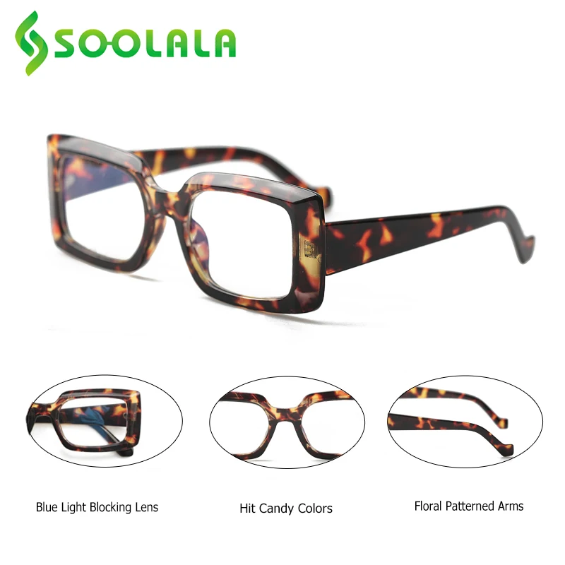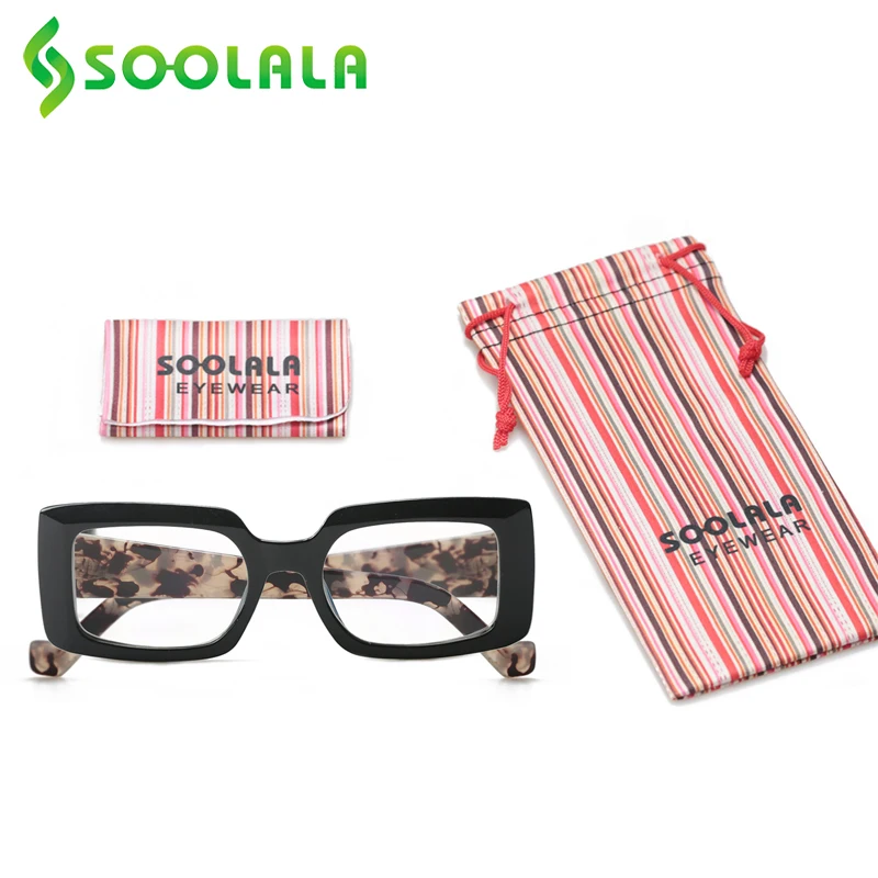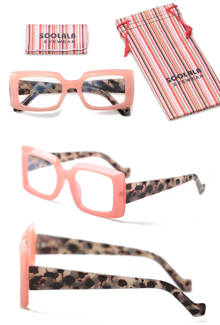 SOOLALA Small Square Anti Blue Light Reading Glasses For Women Candy Color Wide Arms Presbyopia Glasses Magnifier For Reading