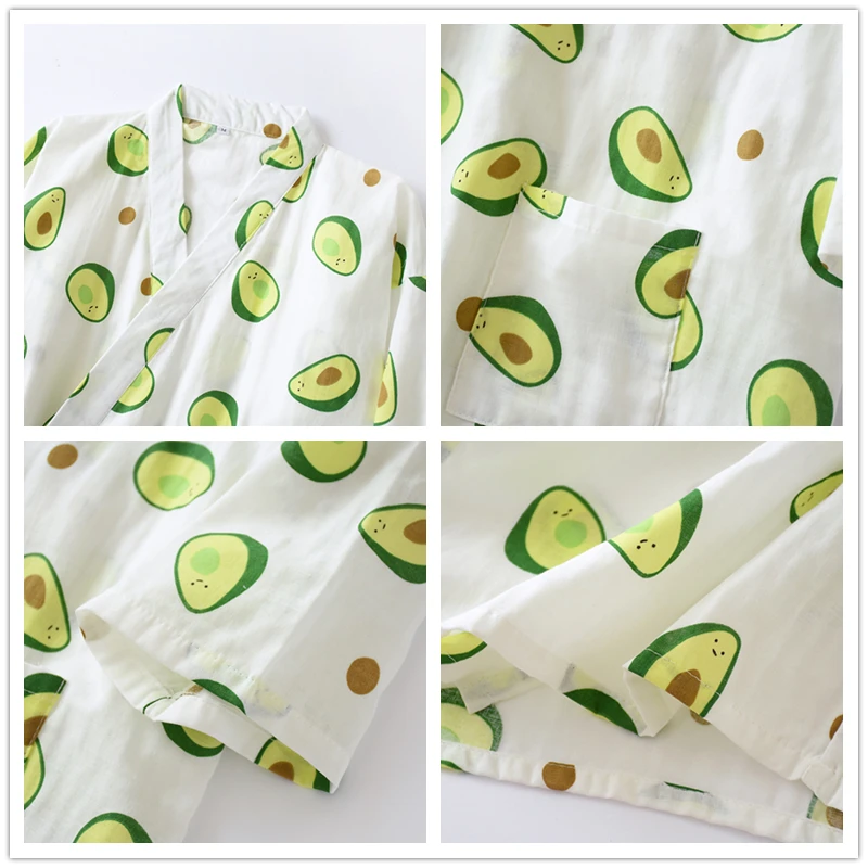 Халат женский хлопковый, с рисунком кошки и авокадо