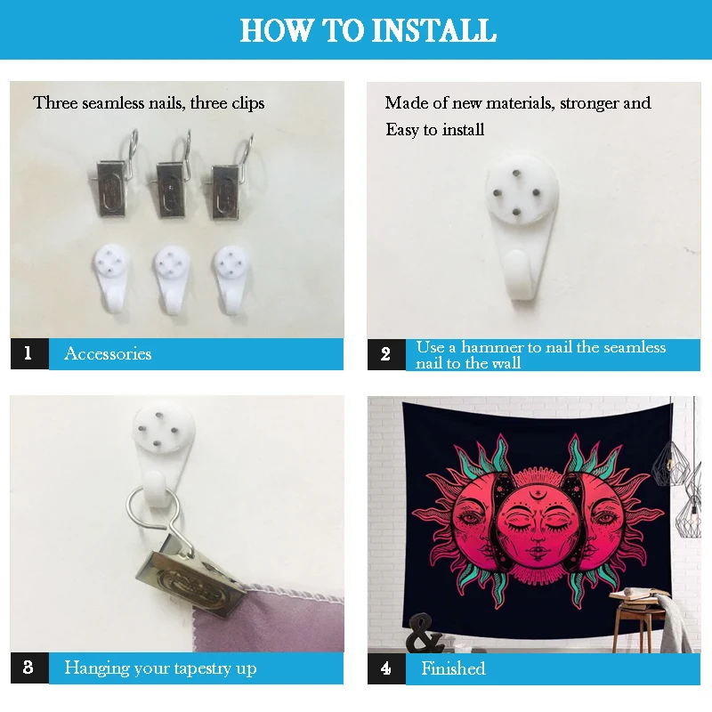 Посылка: 1 гобелен(Отправить аксессуары для установки)