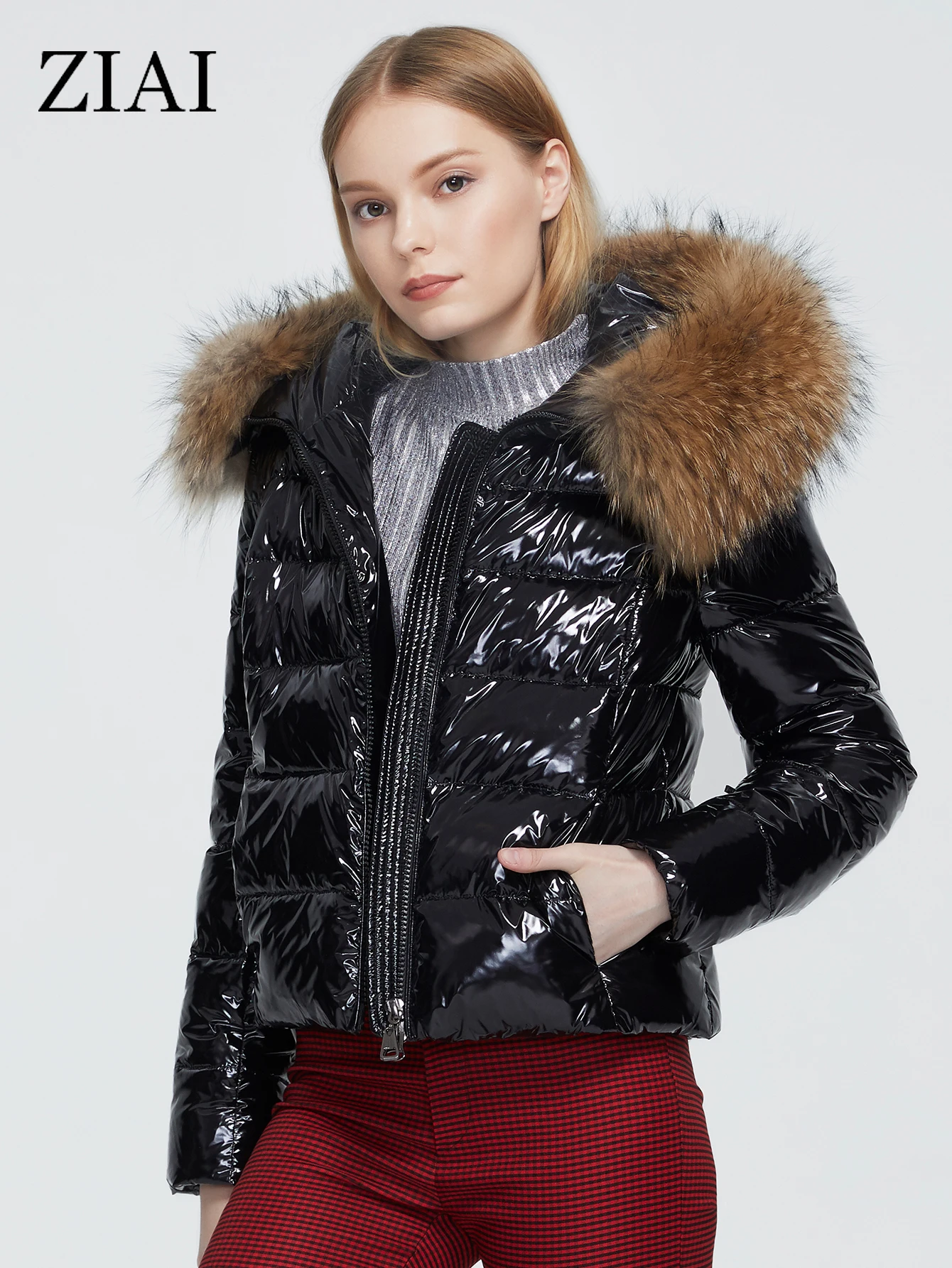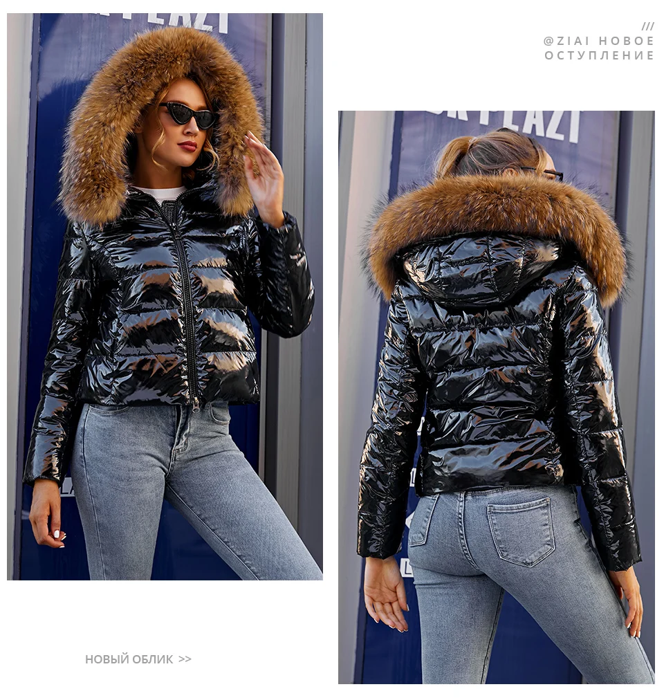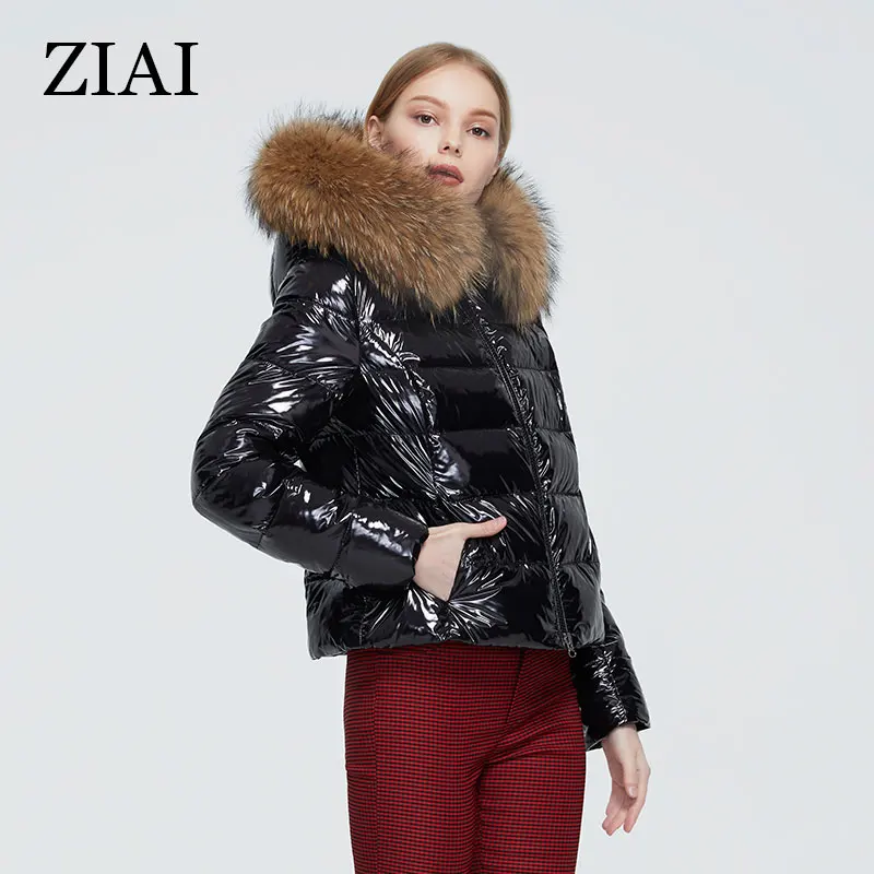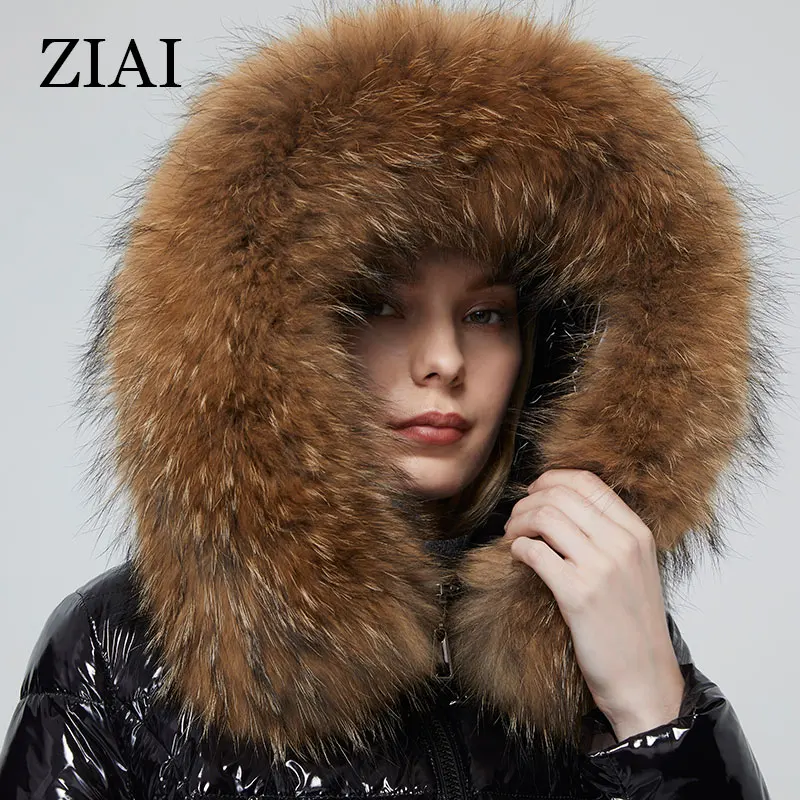 ZIAI, 2021, Женское пальто, блестящая ткань, большой меховой воротник, горячая Распродажа, зимняя женская куртка, Стильное женское пальто, фабричное качество, ZR-7267