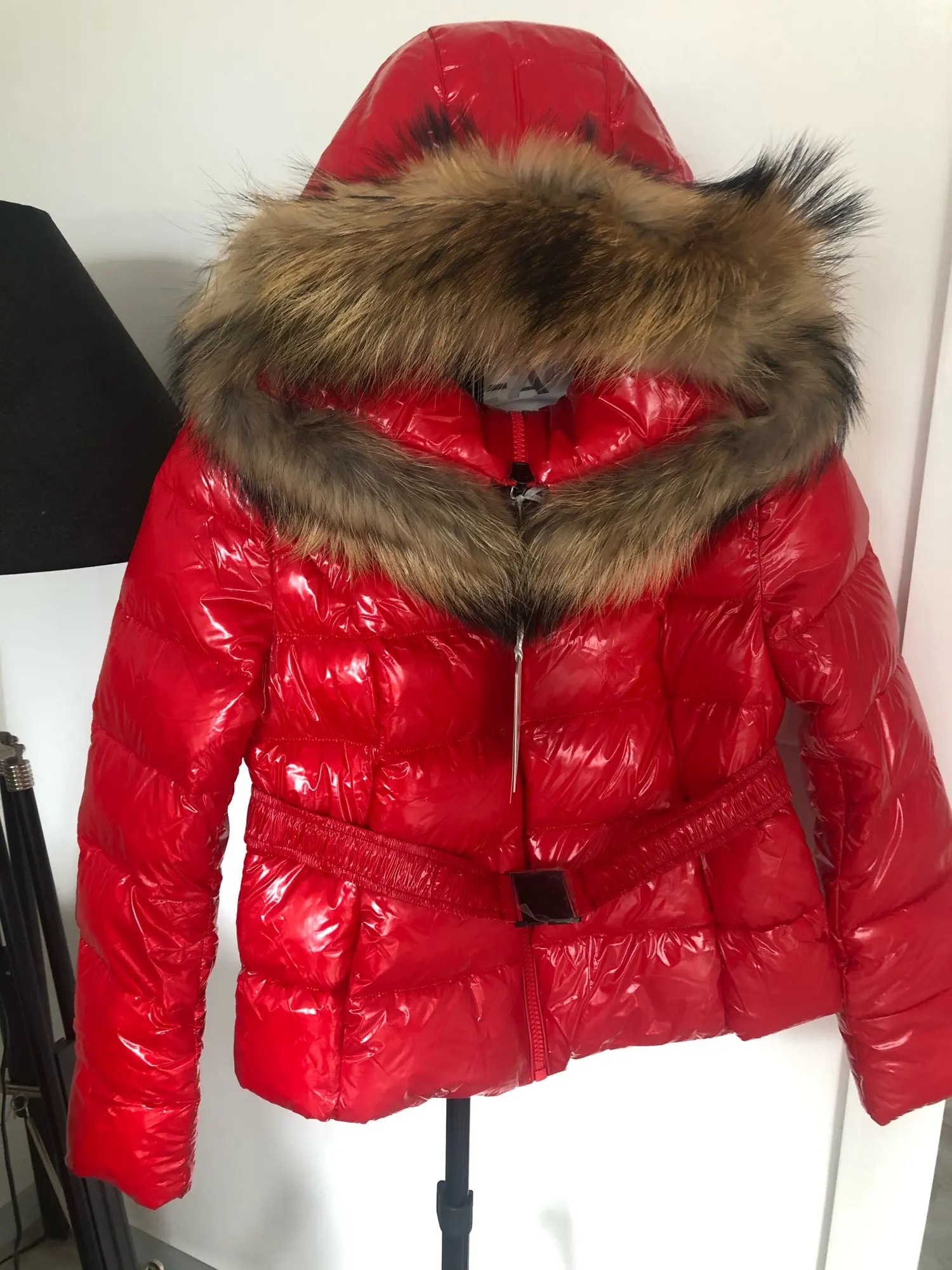 36 rozmiar to raczej 38 na pewno to nie s :) kołnierz piękny, puszysty. Pasek duży, spada z kurtki, musiałabym go wiązać. Nie będę nosiła dlatego go nosiła. Ściągnęłam dół ściągaczami i mam taka bombkę, a szkoda bo chciałam oddzielić talie paskiem. Przyszła po Ok 3 tyg, kurierem.