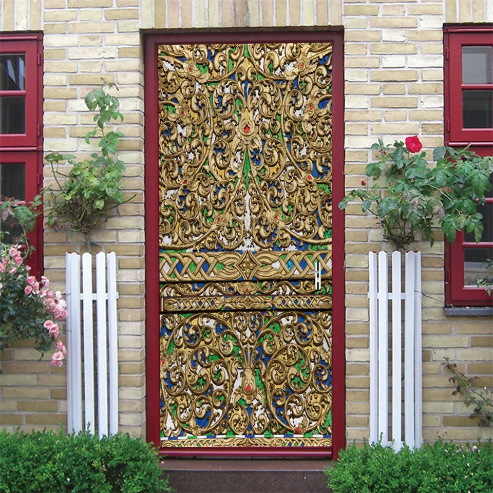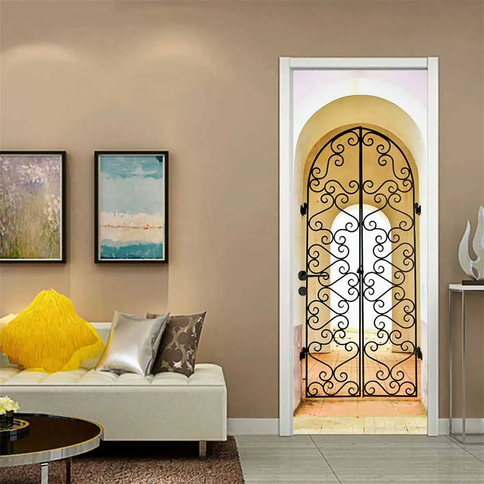 2 шт./компл., белые обои для дверей, самоклеющиеся ПВХ наклейки на стену, керамическая наклейка, Ретро деревянная дверь, настенная, домашний дизайн, Декор, плакаты