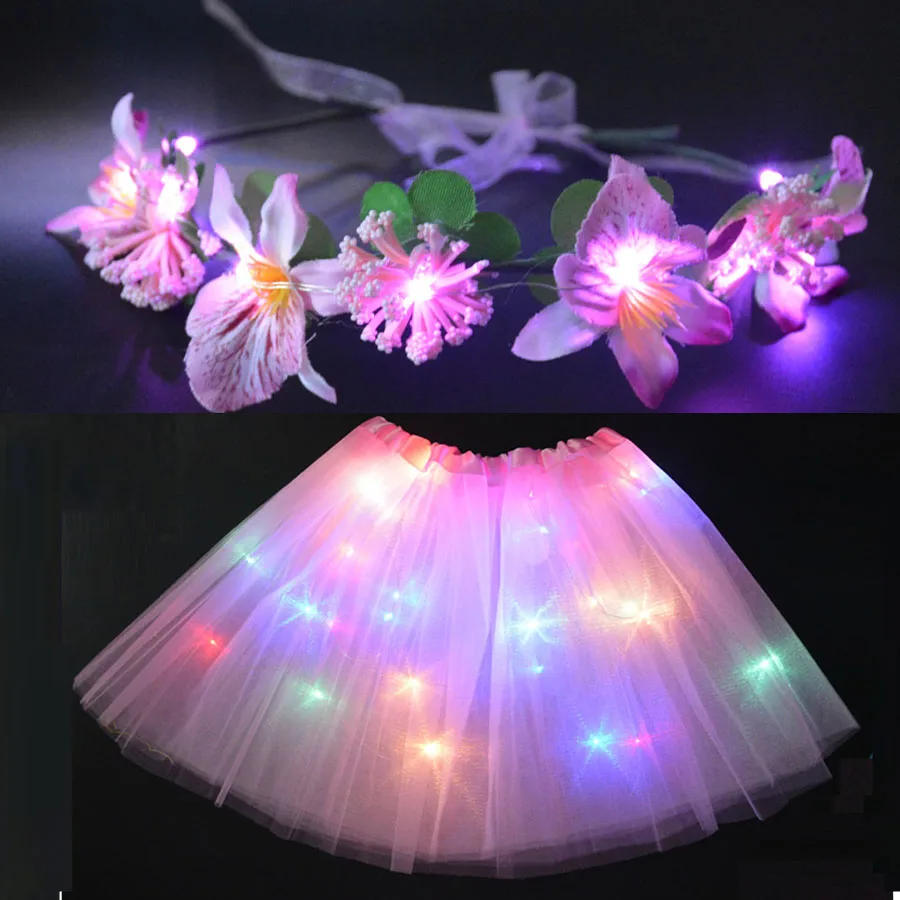 Светящийся цветочный венок с юбкой-пачкой для девочек, повязка на г...