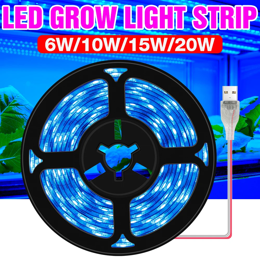 Светодиодная лента полного спектра для выращивания растений, 0,5 м, 1 м, 2 м, 3 м, USB