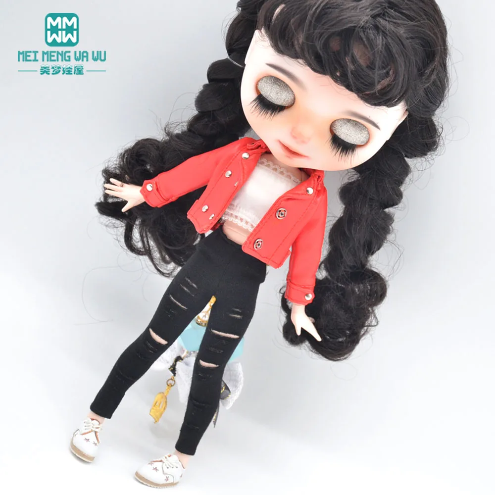 Одежда Blyth, новая модная кожаная куртка, красный, серебристый, коричневый, черный, для кукол 28-30 см Azone 16, аксессуары для кукол