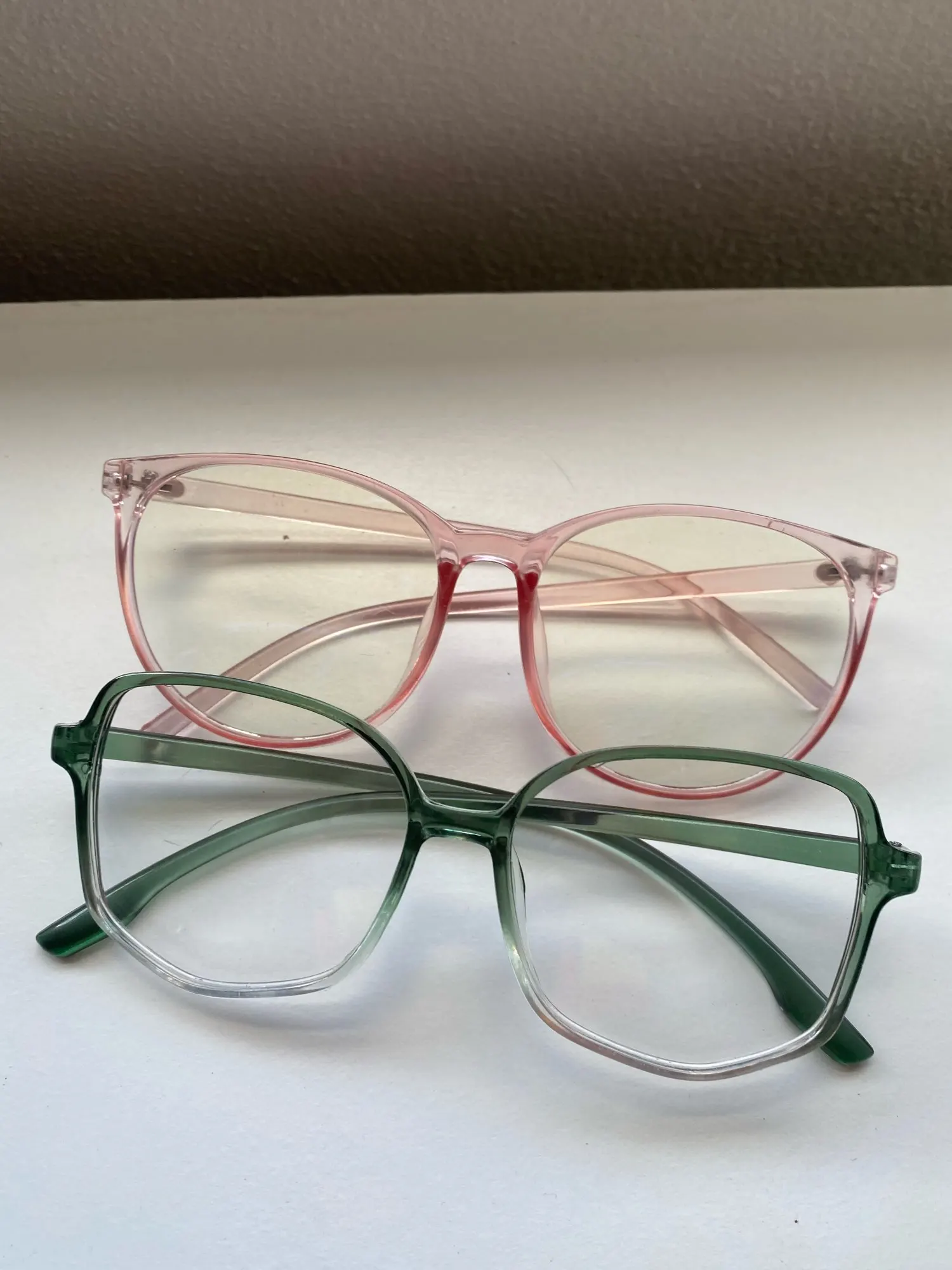Очки выглядят очень красиво! Однако в нем указано, что они являются синими светящимися очками, которые помогают долгие часы смотреть на компьютер. Очки не соответствуют описанию. Просто взглянув на них и надев их, я могу сказать. На картинке, у меня есть подходящие голубые легкие очки сверху. Вы можете видеть, что линзы имеют другой оттенок.