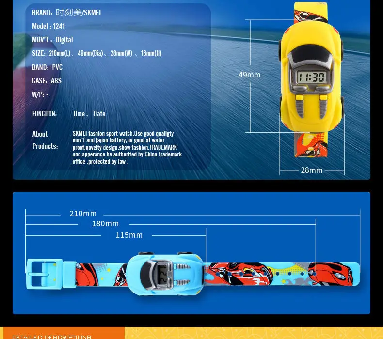 Детские электронные цифровые часы SKMEI с милым 3d-рисунком автомоб...