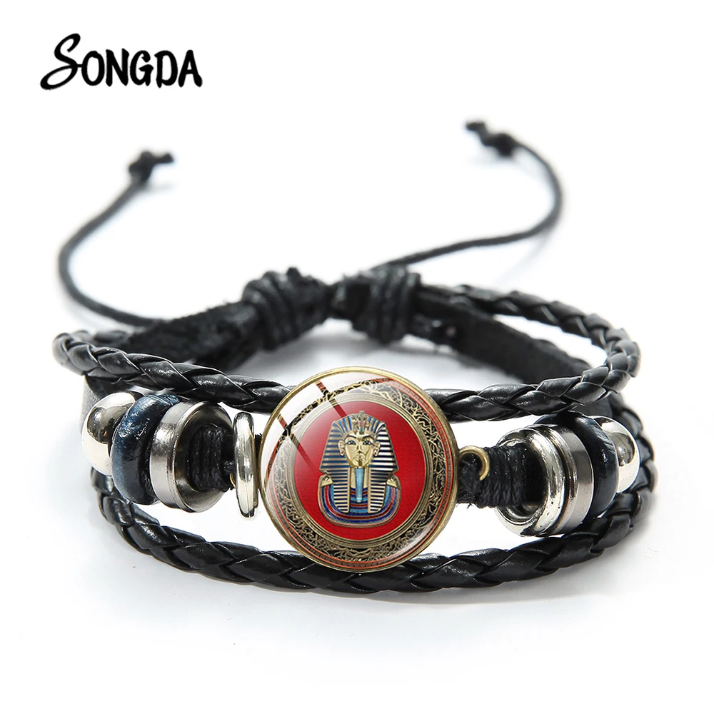 Винтажный плетеный браслет Фараона, многослойный, мужской, Египетский Анкх, распятие, символ Египта, стекло, браслет браслеты с кабошоном