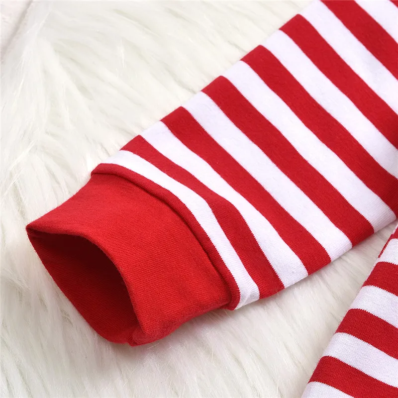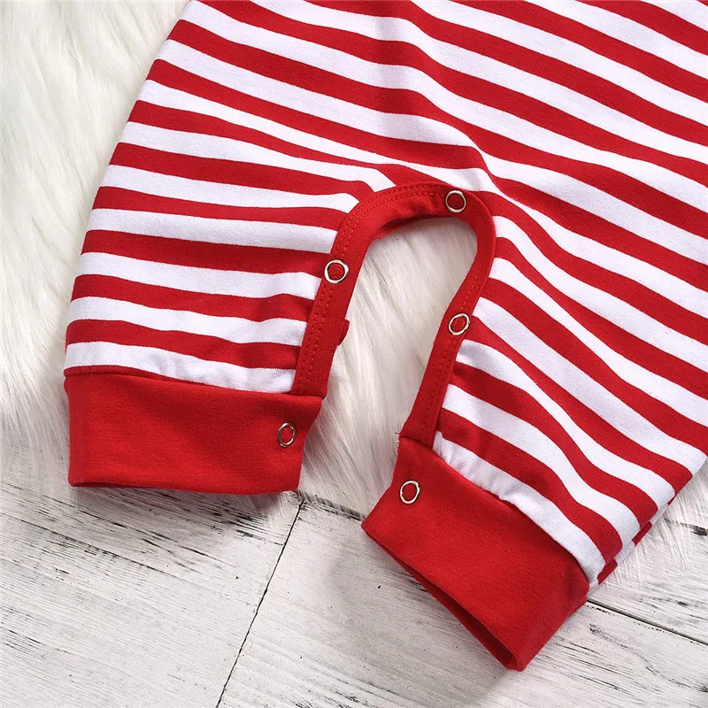 Детский комбинезон в полоску с принтом Санта-Клауса; Комбинезон с длинными рукавами и круглым вырезом для маленьких мальчиков и девочек; Длинные брюки на пуговицах