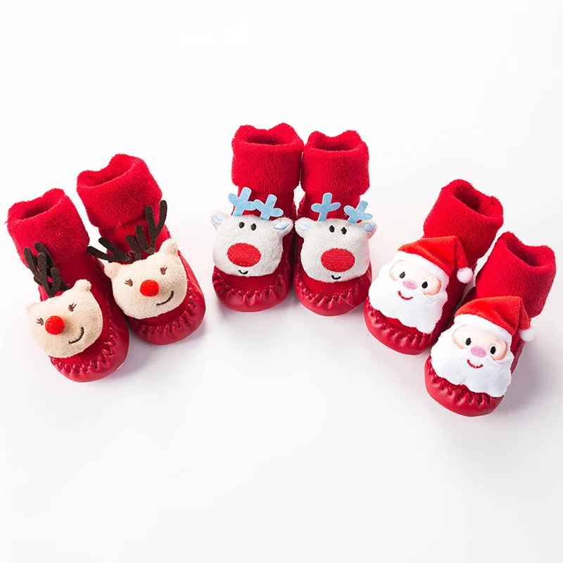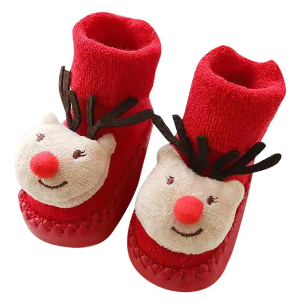 2020 Носки для маленьких девочек и мальчиков, теплые зимние рождественские носки-тапочки, Нескользящие Детские носки, детские повседневные носки для малышей
