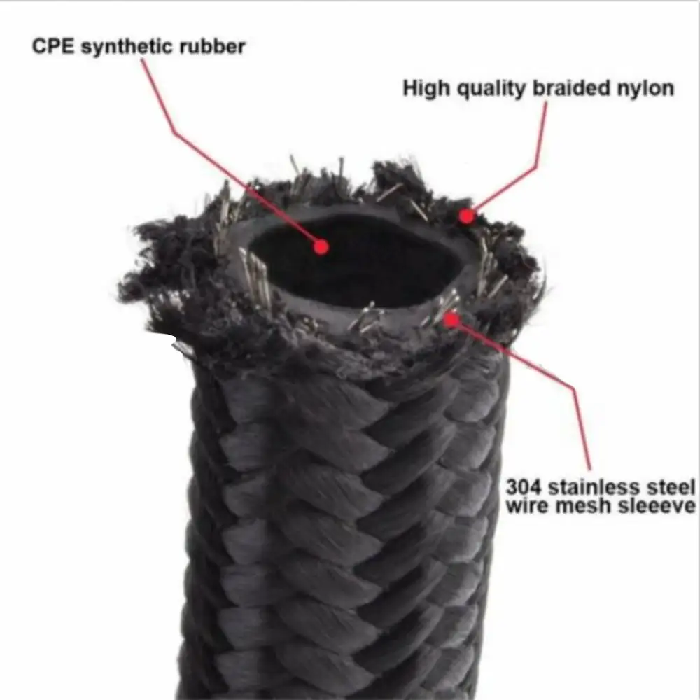 5 м 16 футов, AN4, AN6, AN8, AN10, топливный шланг, масляный, газовый охладитель, трубка, черная нейлоновая крышка, нержавеющая сталь, плетеная внутри, CPE, резина