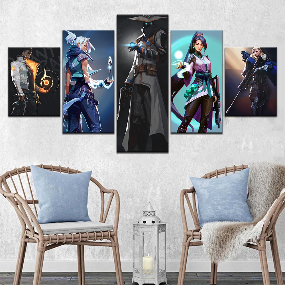 5 шт. валорант масляный Джетт шалфей Cypher Феникс Сова Холст Искусство домашний декор наклейки для видеоигр плакаты модульная рамка