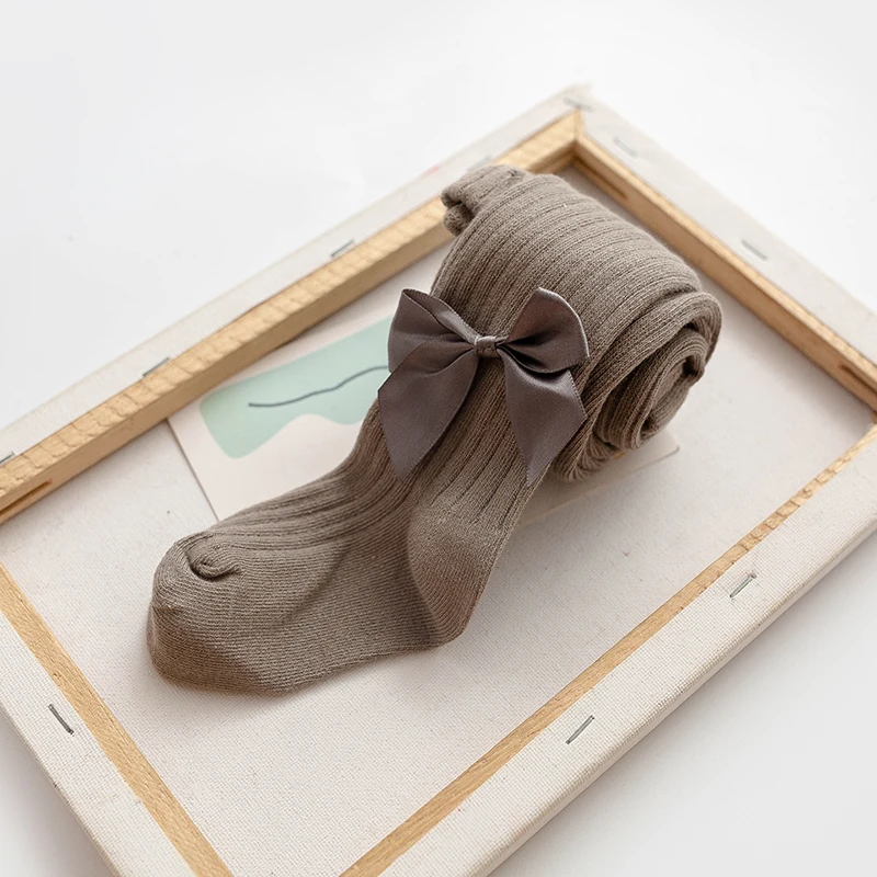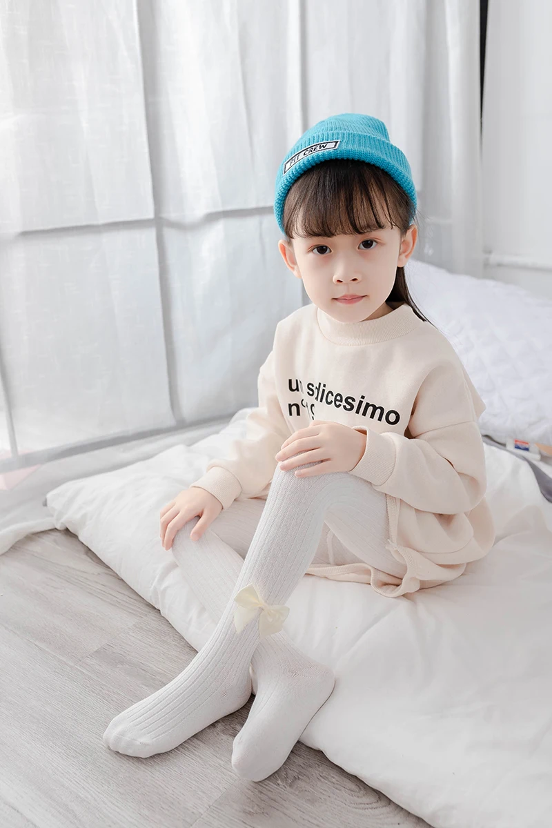 Белые хлопковые колготки с бантом; Зимние теплые мягкие дышащие чулки для девочек; Модные трикотажные колготки для маленьких девочек