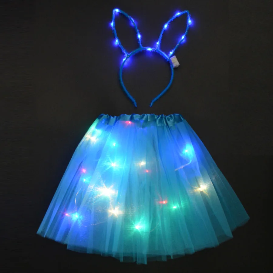 Светодиодная юбка-пачка для девочек, светящаяся юбка с кошачьими ушками, женский костюм, подарок на вечерние ринку, Рождество, день рождения, свадьбу, Пурим, косплей