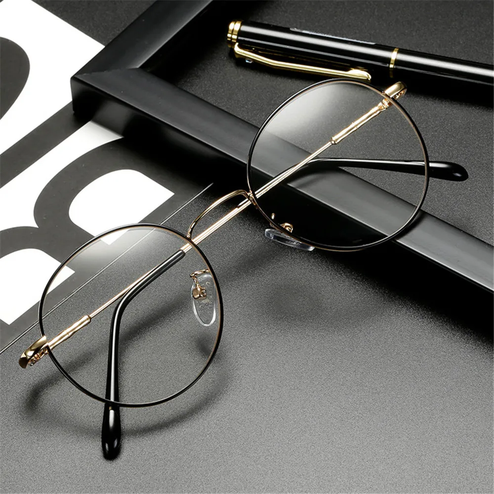 Очки для зрения, винтажные, Круглые, в металлической оправе, блокирующие синий светильник, в стиле колледжа, с прозрачными линзами, для игр, мобильный телефон