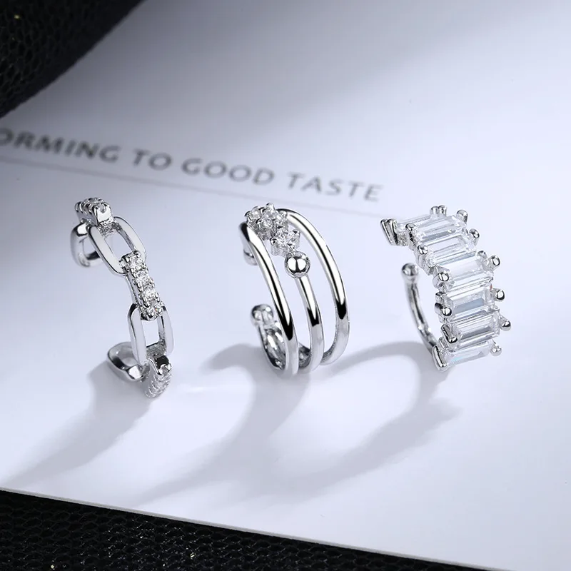 Серьги-каффы женские, многослойные, серебристого цвета, без пирсинга, 1 шт., циркониевый зажим