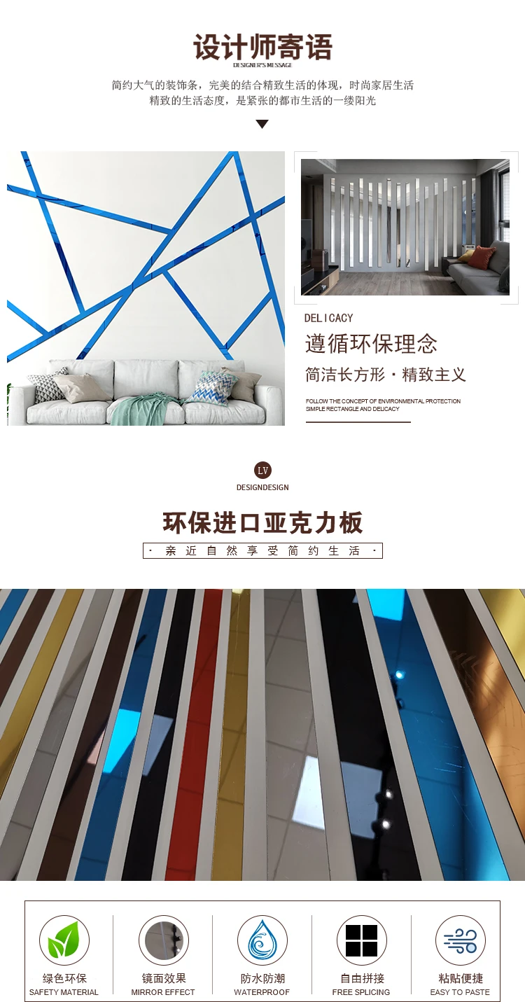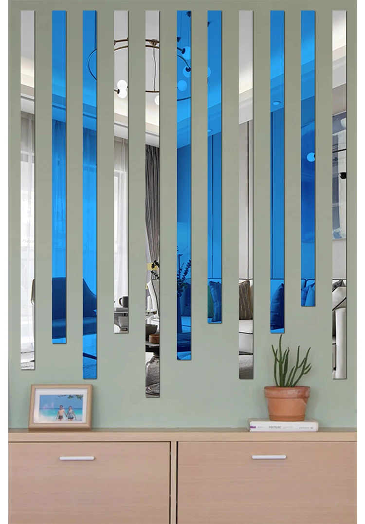 Длинные акриловые наклейки на стену Самоклеящиеся 3d Стерео ТВ фон украшение стены зеркало наклейки на стену 10 шт.