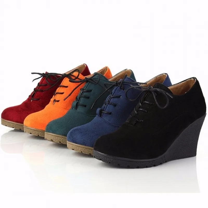 Женские туфли на танкетке Fanyuan, повседневные туфли на высоком каблуке, со шнуровкой, модная удобная обувь высокого качества, Лидер продаж