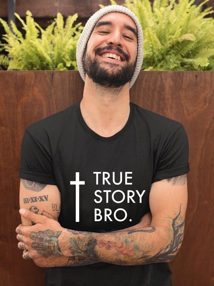 Мужская футболка в стиле Харадзюку TRUE STORY BRO, Уличная Повседневная футболка с коротким рукавом и принтом христианского креста, религиозная Подвеска "Иисус"