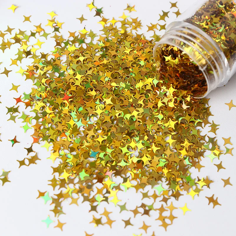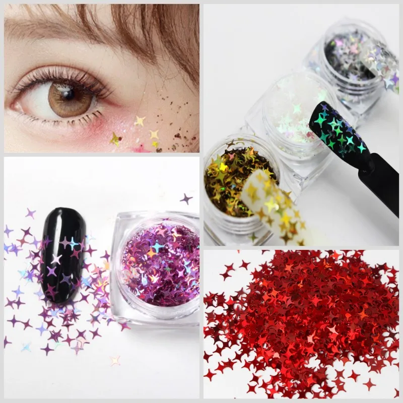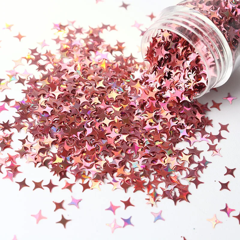 1 банка голографических крестиков для ногтей 4 мм Лазерная Звезда Блестящий лак для ногтей 3D зеркальный лак для ногтей украшение для ногтей материал