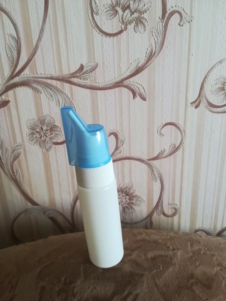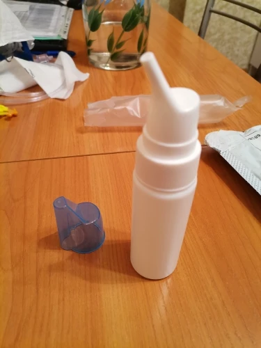 Отличный флакон-спрей для орошения полости носа. Хороший,большой душ,но не бьет в нос. Сразу опробовала, залив физ.раствор. Но вообще я люблю делать свой физ.раствор из морской соли. На 1л кипячёной и фильтрованной воды, добавить 1 чайную ложку без горки морской соли. Делаю на 500 мл и храню в бутылке в темном,прохладном месте. В 10 раз дешевле чем тот же Аквамарис или любой другой аптечный спрей. Советую!