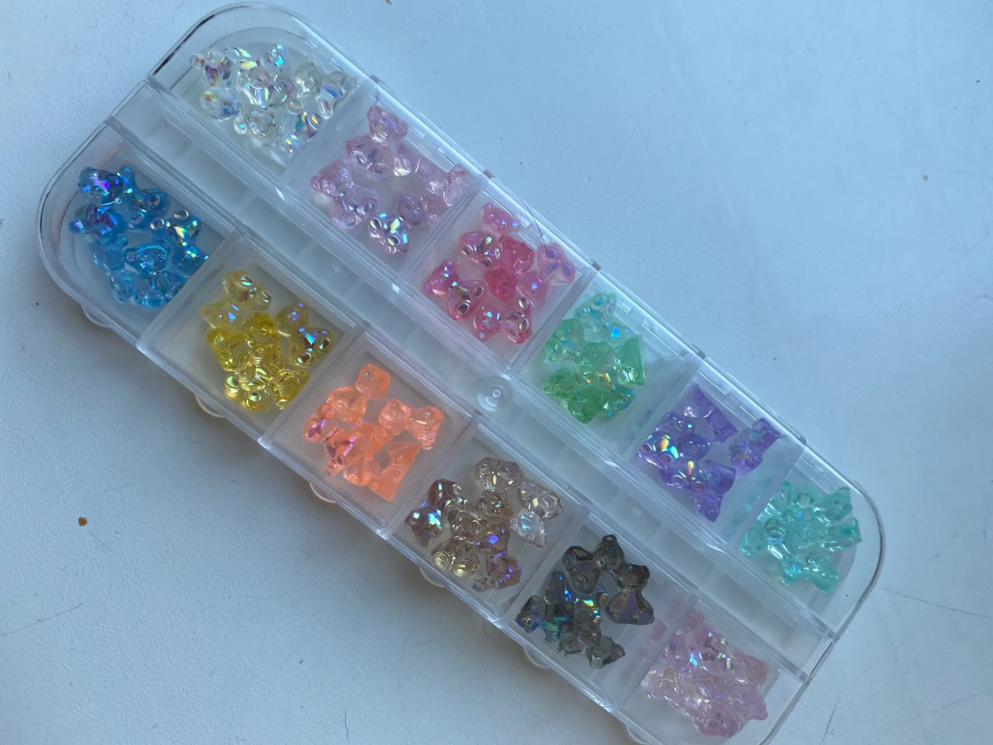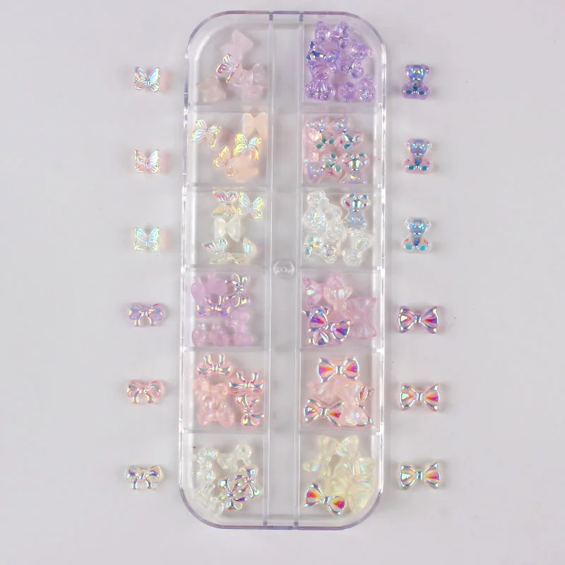 12 сетчатых коробок, 60 шт., 3D милый медведьбабочка, полимерные украшения для ногтевого дизайна, Аврора Стразы для ногтей, блестящее искусство
