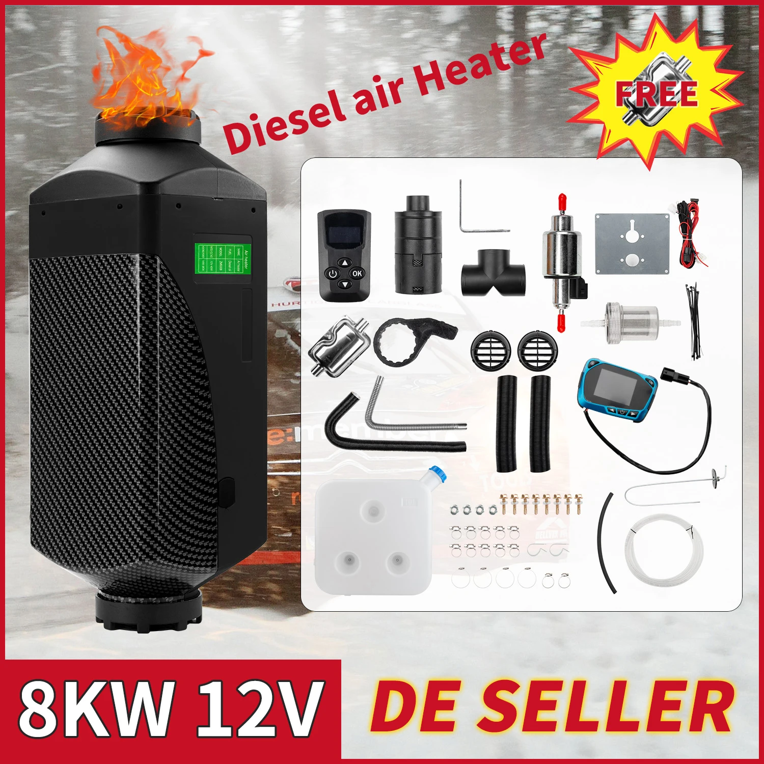 Воздушный дизельный топливный обогреватель, 8 кВт, 12 В, ЖК-пульт дистанционного управления, 1 отверстие, парковочный обогреватель для автомобилей, грузовые автобусы, автодомов, лодок