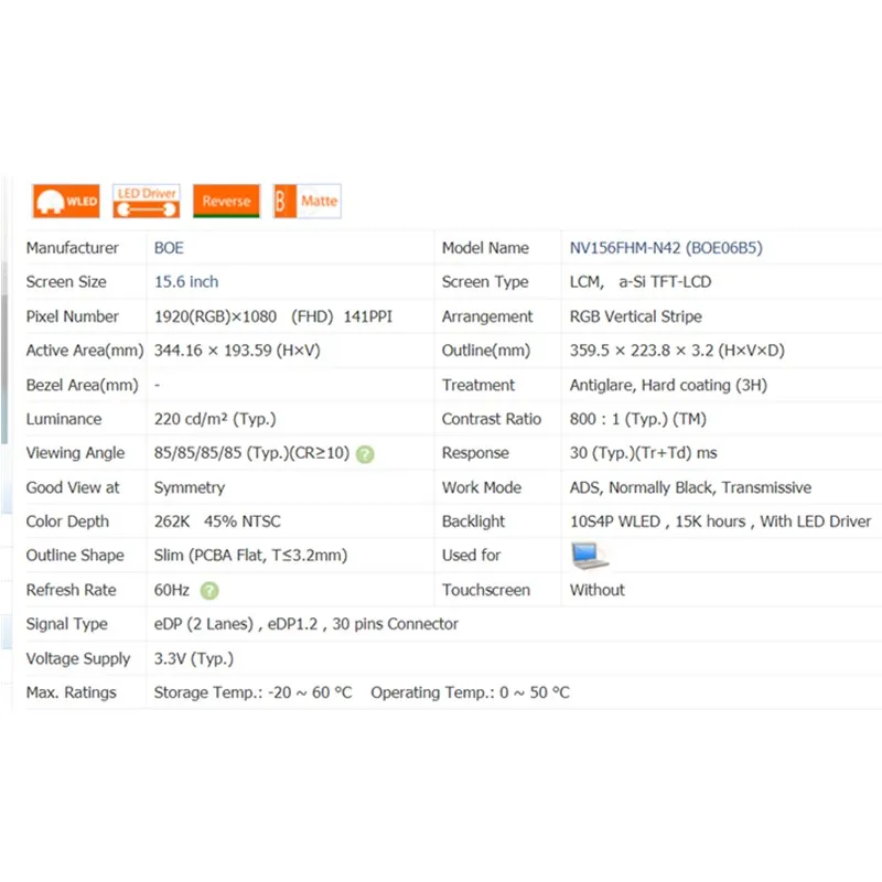 ЖК-экран для ноутбука 15,6 ", IPS-дисплей, NV156FHM-N42, LP156WF6-SPK1, B156HAN04.1, 1920x1080, 30Pin, FHD матрица, панель для ноутбука NV156FHM N42