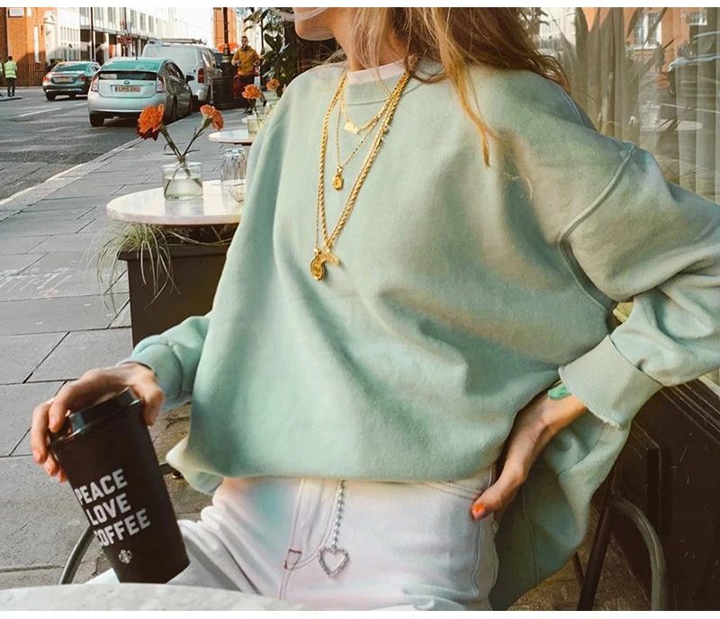 Свитшот женский в винтажном стиле, флисовый Свитшот оверсайз, повседневный зеленый, теплая винтажная толстовка, зима 2020