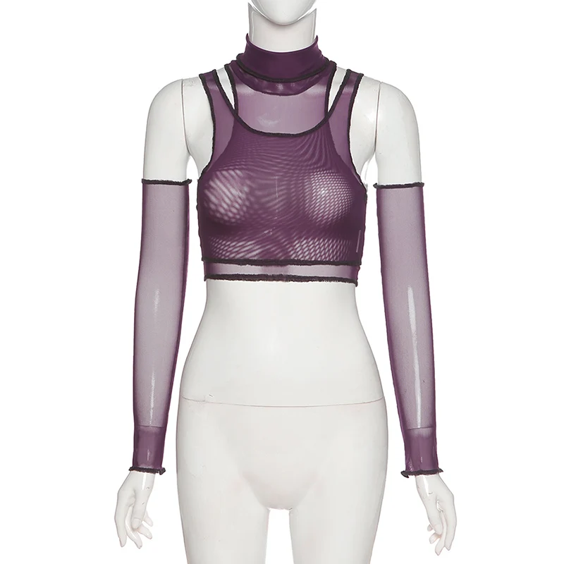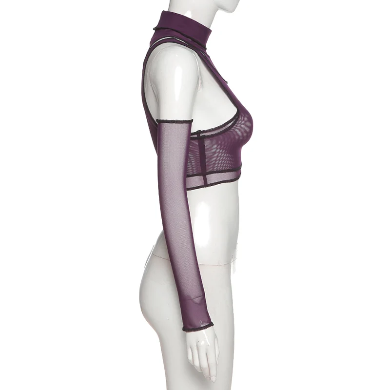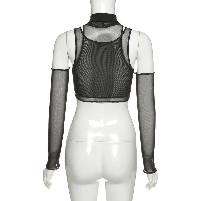 Клубная сетчатая майка без рукавов, женская модная уличная Стильная однотонная укороченная футболка с открытыми плечами