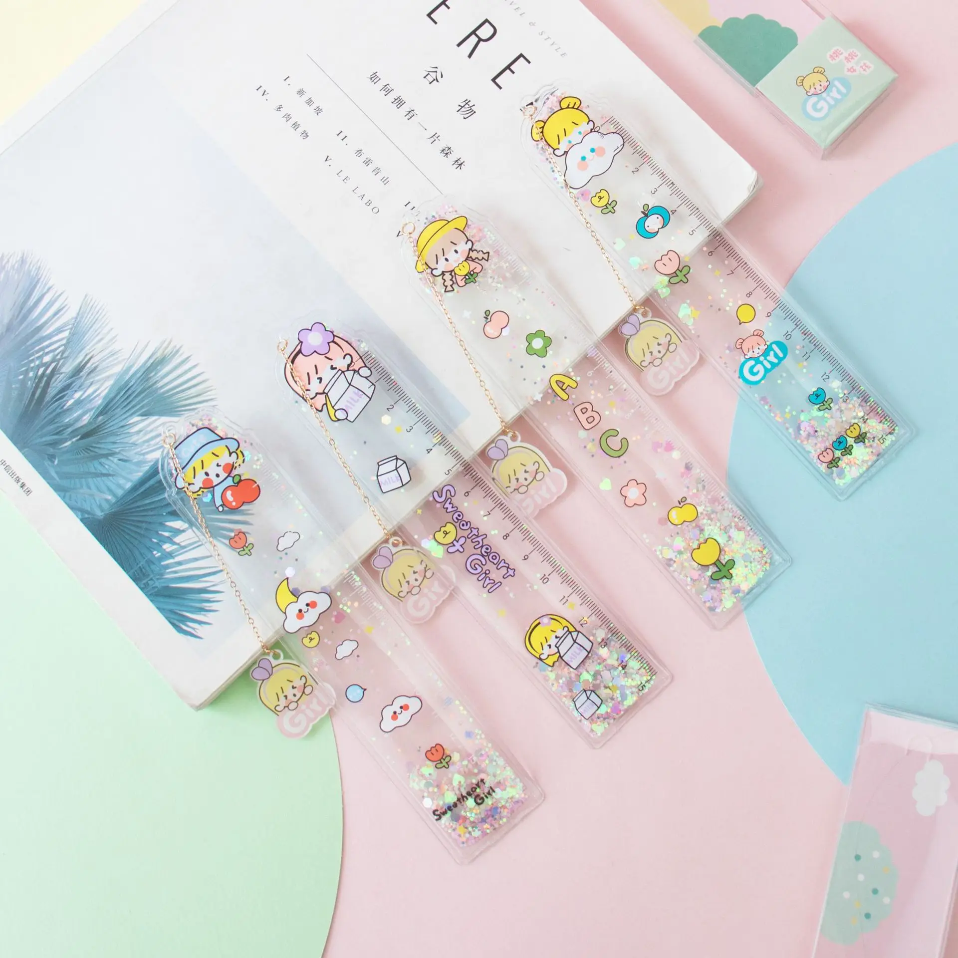 1 шт.лот, милая линейка с наполнителем для девочек, линейка, канцелярские принадлежности для девочек, принадлежности для школы и офиса